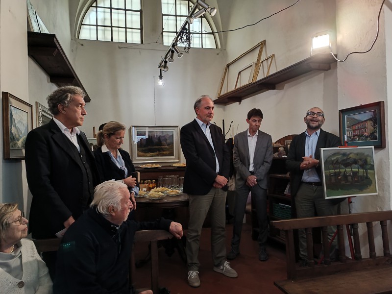 A fare gli onori di casa il primo cittadino Antonio Pasquini che ha ringraziato innanzitutto i colleghi sindaci presenti e la proprietà della location scelta per ospitare l'allestimento dedicato a un artista che “che amava passare l’estate a Casargo e amava immergersi nella vita di tutti i giorni dei casarghesi”.