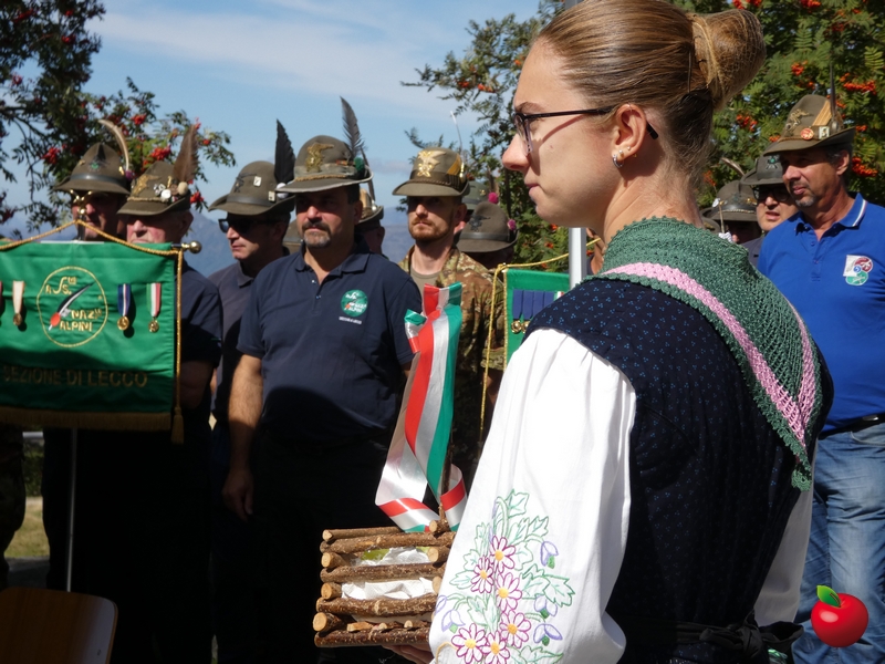 "In prima fila" dinnanzi all'altare - allestito all'esterno della Chiesetta per permettere a tutti gli alpini e simpatizzanti disseminati nel grande spazio verde delle Betulle di ascoltare - una nutrita schiera di sindaci in fascia tricolore, a cominciare da quello di Margno, paese ospitante, con il Sottosegretario Mauro Piazza (che dopo l'intervento di Invernizzi ha parlato di parole non vuote invitando a ricordare perché vengono ripetute) e la presidente della Provincia Alessandra Hofmann che nel ringraziare la sezione ANA di Lecco, ha poi toccato tre capisaldi di una giornata da vivere come momento di riflessione: il ricordo dei morbegnini, attraverso l'apposizione di nuove marmette votive (oggi piastre), "che non sono semplici pietre, sono nomi di uomini "pronti alla morte" come recita il nostro Inno"; l'apertura ai giovani, con la presenza di un gruppetto di iscritti al campo scuola estivo: "ragazzi - ha detto loro - non siete il nostro futuro, ma il presente"; la riconoscenza verso gli alpini in armi, "uomini e donne che hanno scelto di mettere a disposizione la loro vita per noi".