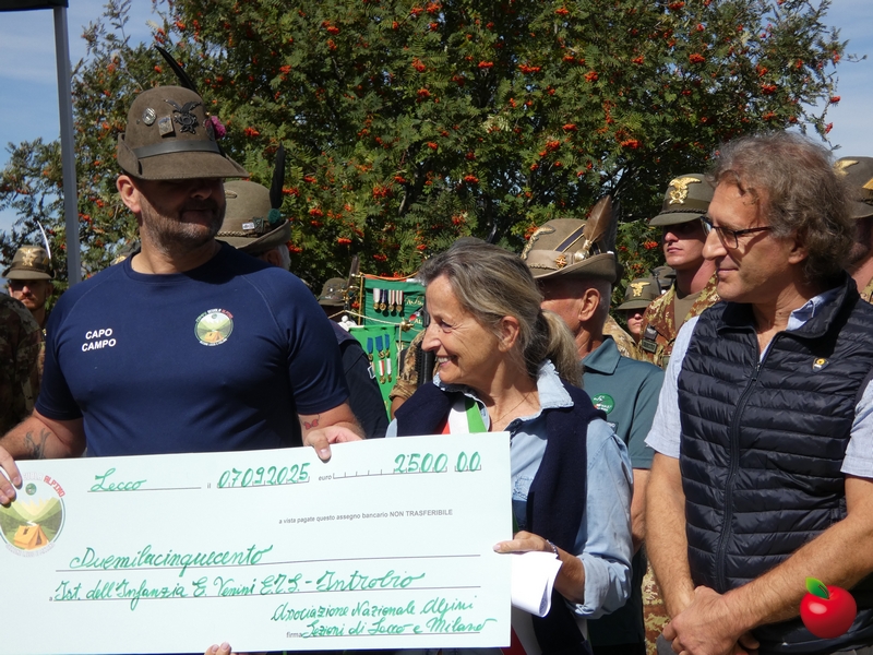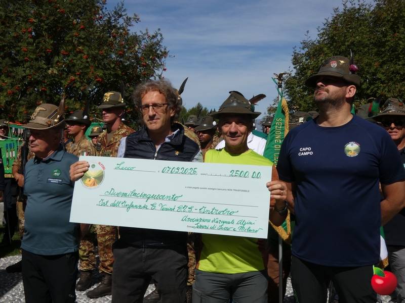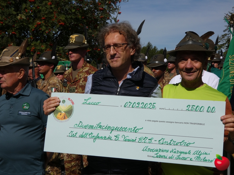 Il regalo più grande lo ha ricevuto però, poi, la scuola dell'infanzia di Introbio, quale “grazie” dell'ANA al paese capitano dalla sindaca Silvana Piazza per l'ospitalità ricevuta a giugno quando il campo scuola delle sezioni di Lecco e Milano è approdato per la prima volta in Valle. Gli iscritti “hanno potuto vivere un'esperienza di vita vera” ha detto la prima cittadina, nel ringraziare a sua volta le penne nere, dopo l'esibizione dell'assegno da ben 2.500 euro. “Grazie per quello che fate e per quello che siete: fedeltà, coraggio e umanità”.