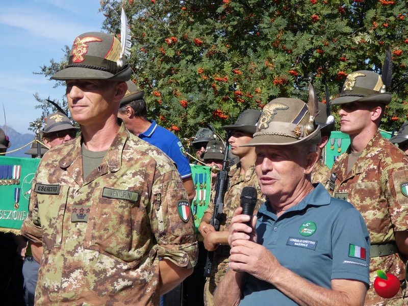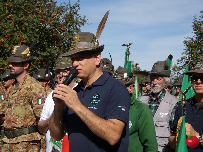 "Perché siamo qui oggi?" ha domandato dando una spiegazione a tale simbolica adunata, in apertura della cerimonia, dopo la sfilata che ha introdotto i vessilli sezionali e i gagliardetti di una miriade di gruppi oltre che a una rappresentanza di militari in armi - il "numero uno" delle nostre penne nere.