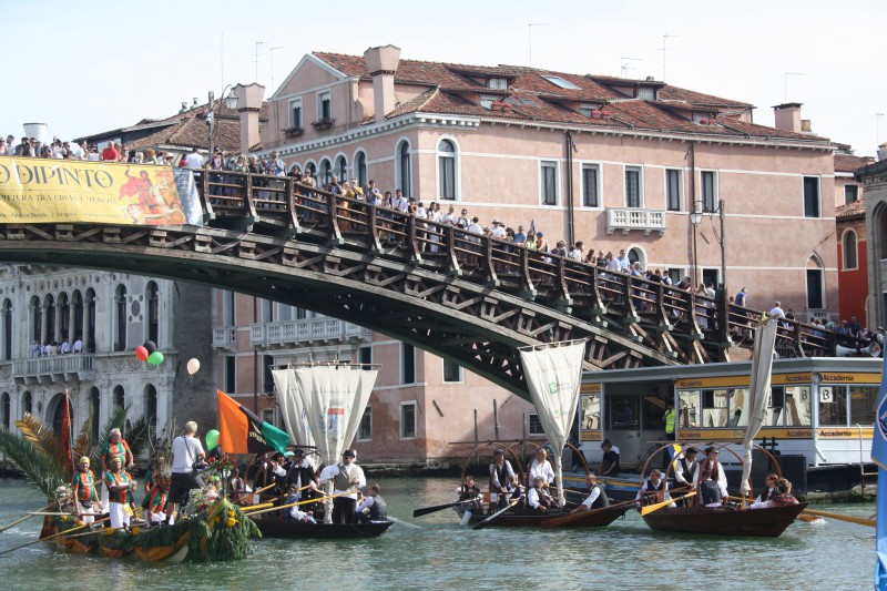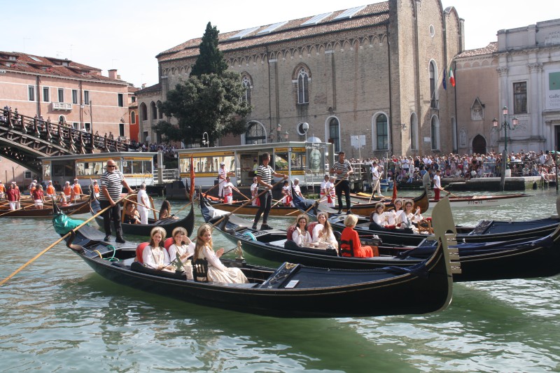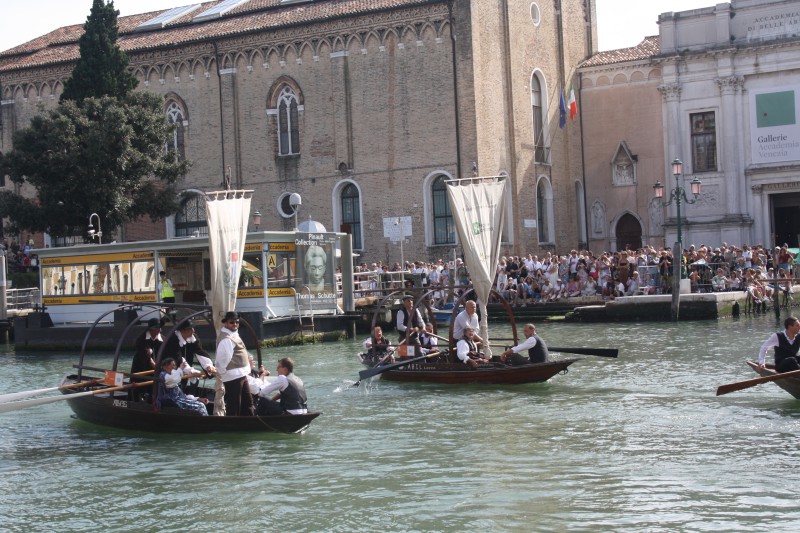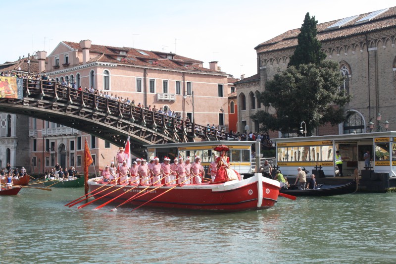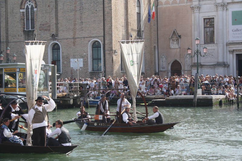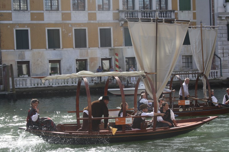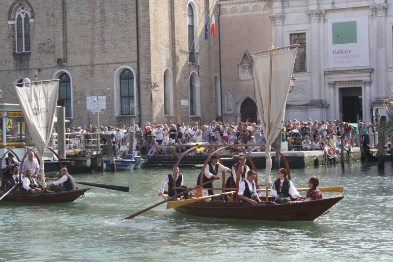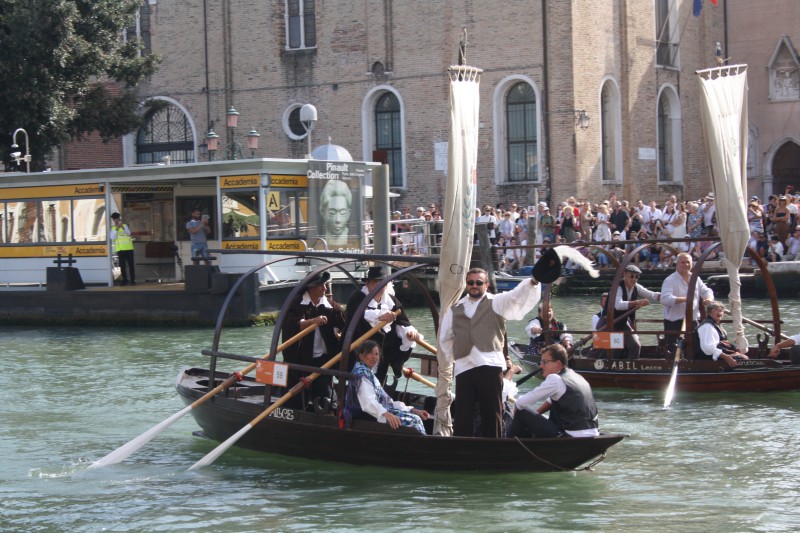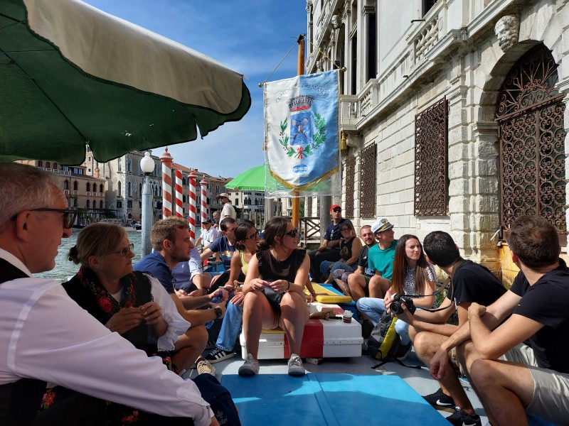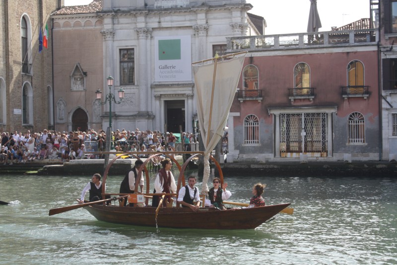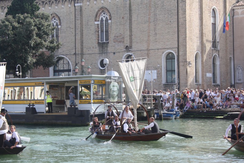 Dopo il pranzo in compagnia, il gruppo si è diviso in due: mentre una ventina di cantori, rigorosamente vestiti in abiti tradizionali, hanno preso parte nel Corteo Storico a bordo delle quattro “Lucie” messe a disposizione da A.B.I.L. (Associazione Barche in Legno Lecco APS) e condotte dai membri dell’A.S.D. Remiera I Laghèe di Bellano, i restanti membri del gruppo hanno assistito alla “sfilata” da terra, o meglio da un’imbarcazione ormeggiata lungo Canal Grande, nei pressi del Ponte dell’Accademia.