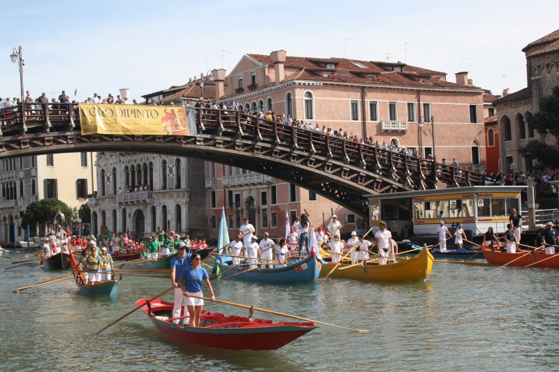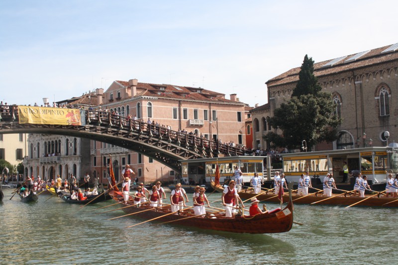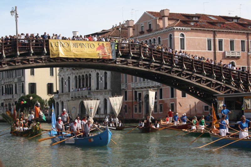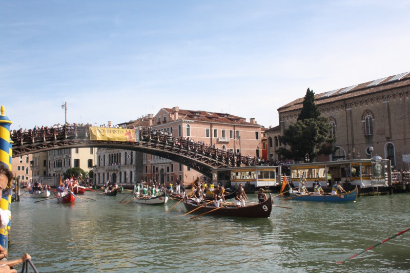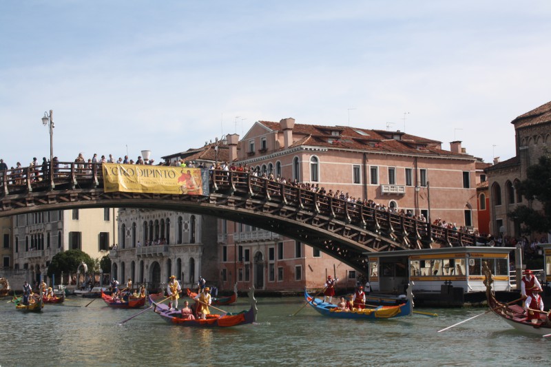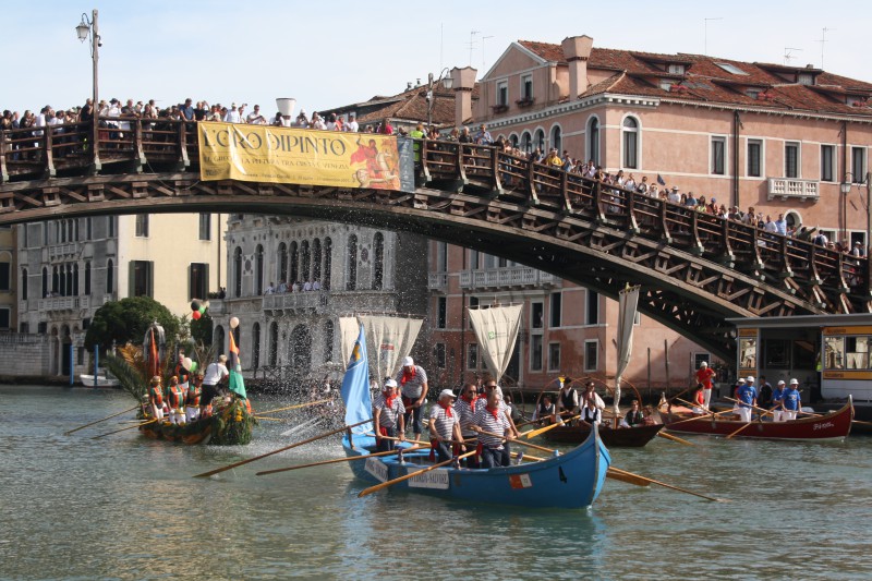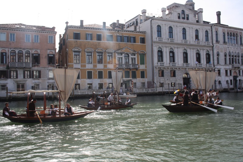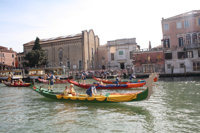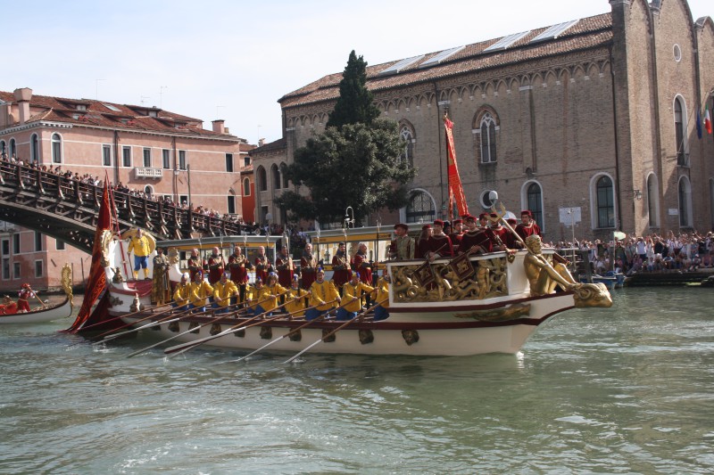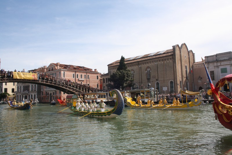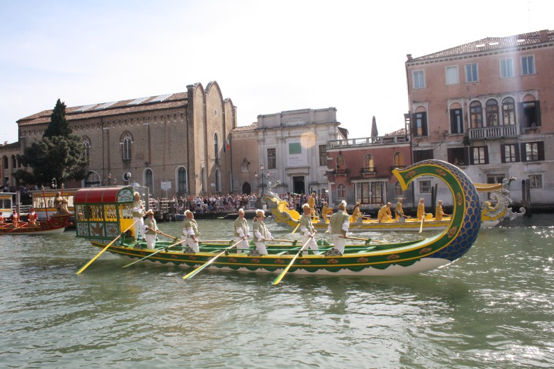 Dopo il pranzo in compagnia, il gruppo si è diviso in due: mentre una ventina di cantori, rigorosamente vestiti in abiti tradizionali, hanno preso parte nel Corteo Storico a bordo delle quattro “Lucie” messe a disposizione da A.B.I.L. (Associazione Barche in Legno Lecco APS) e condotte dai membri dell’A.S.D. Remiera I Laghèe di Bellano, i restanti membri del gruppo hanno assistito alla “sfilata” da terra, o meglio da un’imbarcazione ormeggiata lungo Canal Grande, nei pressi del Ponte dell’Accademia.