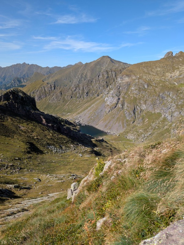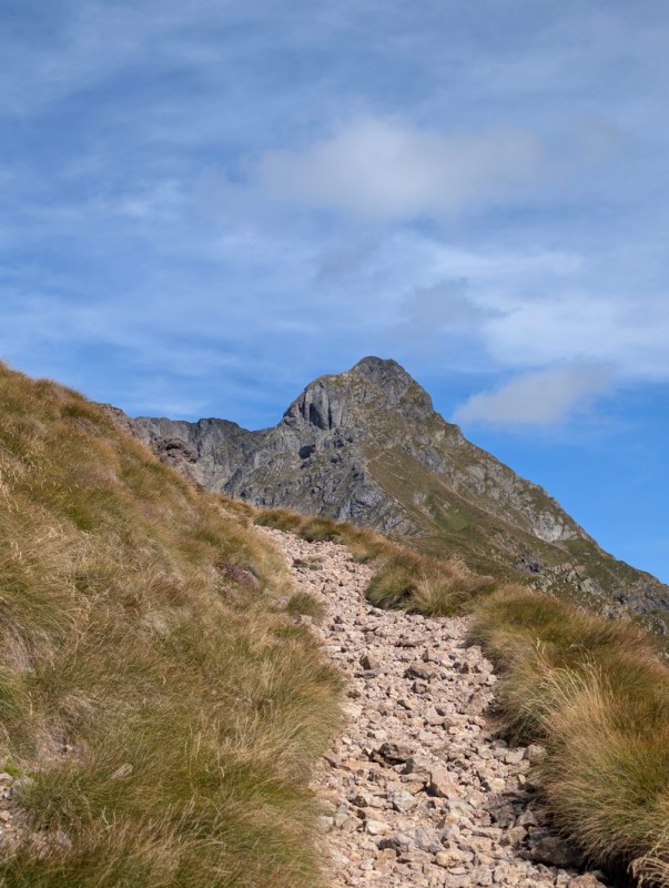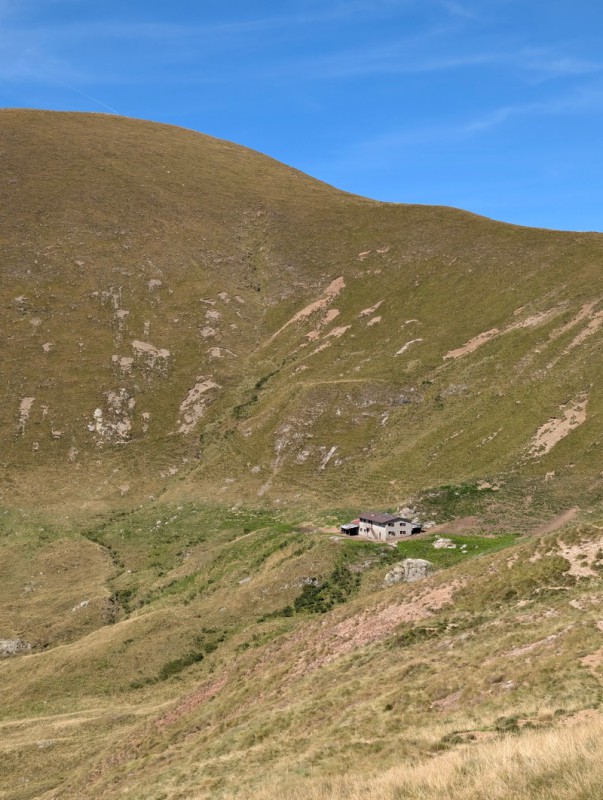 Proseguiamo ora tra ampi prati e un panorama apertissimo con un andamento prevalentemente pianeggiante, finché non arriviamo al Rifugio Grassi (circa due ore 30/45 minuti dalla partenza). Qui ci possiamo concedere una pausa e, perché no, un gustoso pranzo prima di riprendere con la parte più tosta dell’escursione.