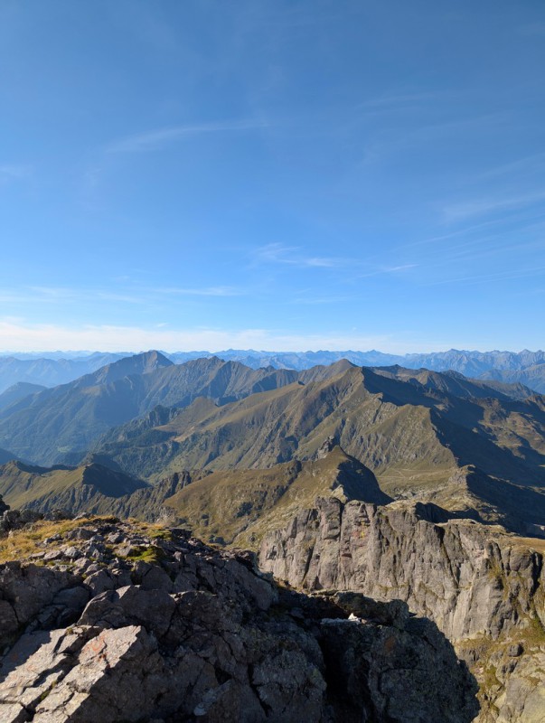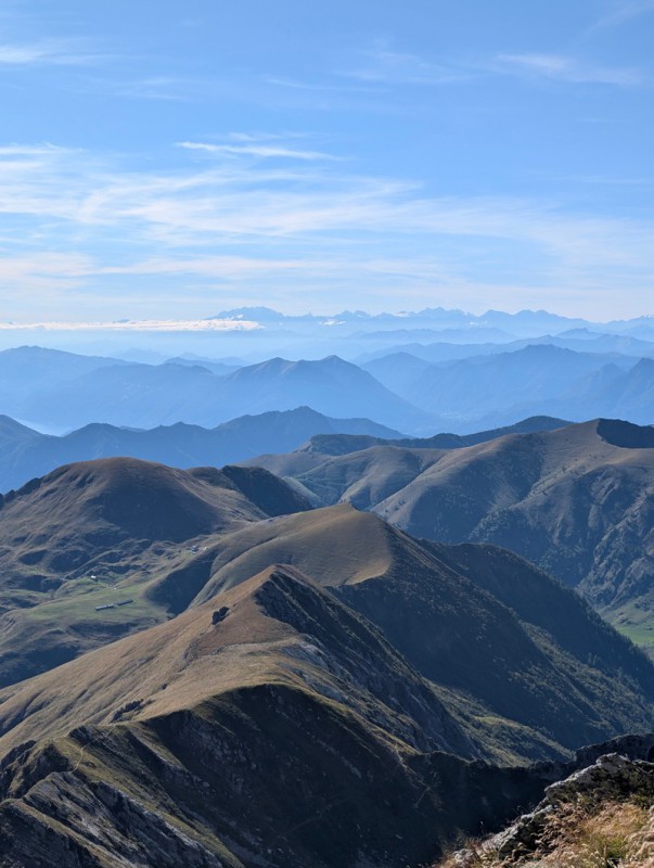 Il panorama dalla vetta del Pizzo Tre Signori è straordinario! Nelle giornate limpide la vista spazia dal Monte Rosa alla pianura, dal Disgrazie e Bernina alle Grigne, oltre a tutte le Orobie bergamasche e pure un pezzettino di lago, nel ramo comasco. Insomma, ripaga decisamente la fatica per arrivare in vetta!