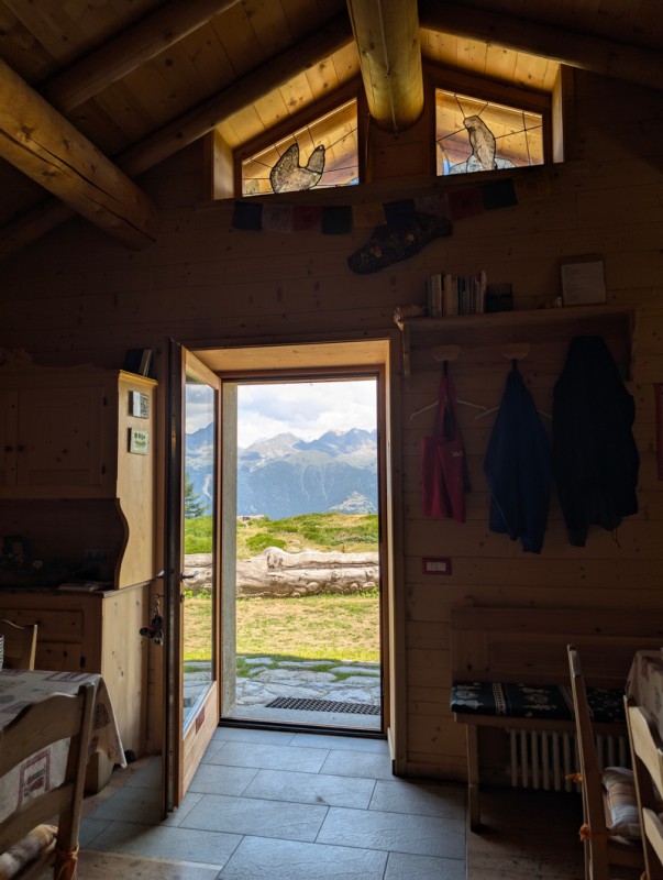 Il Rifugio Gino e Massimo sorge su una bella piana, al limite della quale è posta una panchina in legno per ammirare le bellissime vette che sorgono di fronte. Qui ci troviamo proprio davanti alla Valmalenco e si può ammirare molto bene il versante nord del Monte Disgrazia. Il rifugio è abbastanza piccolo all’interno, ma nella bella stagione ospita alcuni tavoli all’aperto. In ogni caso si consiglia di chiamare prima per verificare l’apertura e la disponibilità (349 7589925 – rifugioginoemassimo@gmail.com).