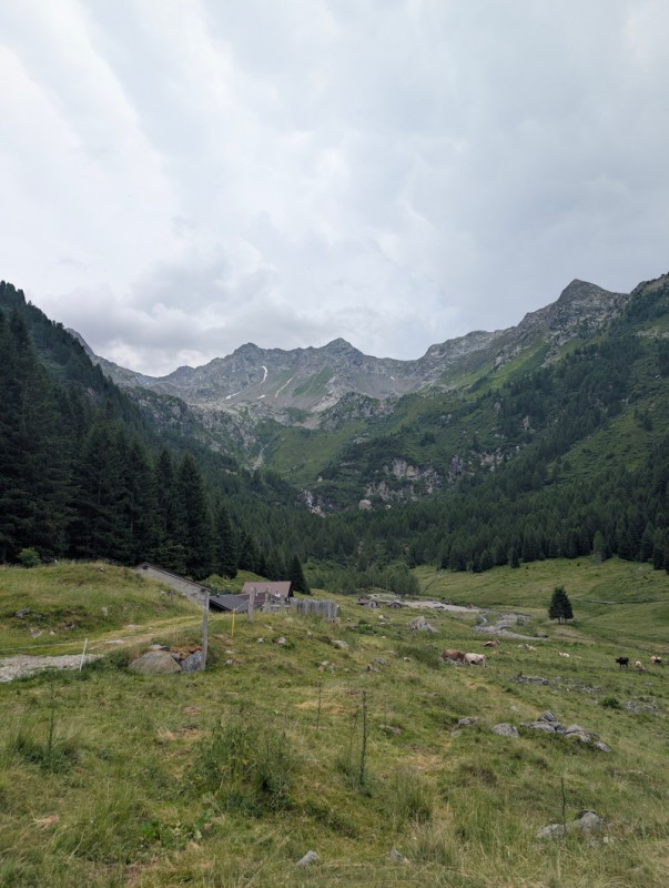Trascorsi altri 30 minuti (1 ora in totale dalla partenza) sbuchiamo nuovamente su una strada agrosilvopastorale. Svoltiamo a destra e in pochi minuti arriviamo nella splendida conca dove sorge l’Alpe Armisola. Qui troviamo una malga dove è possibile acquistare formaggi freschi di giornata.