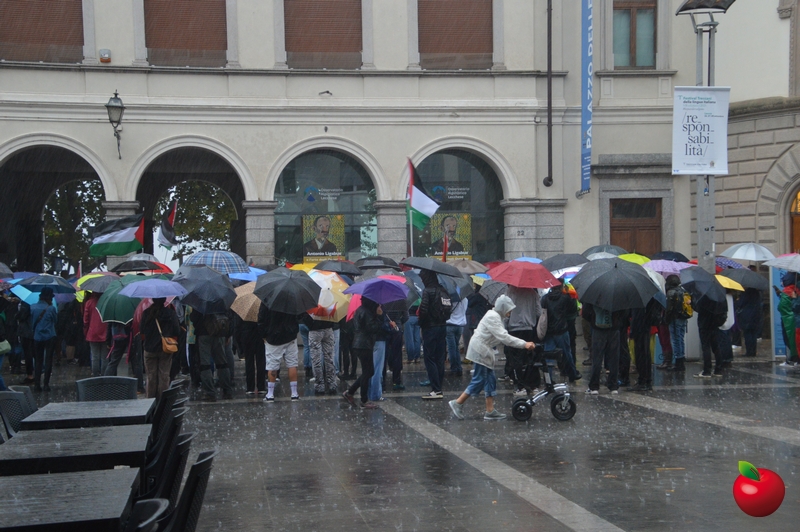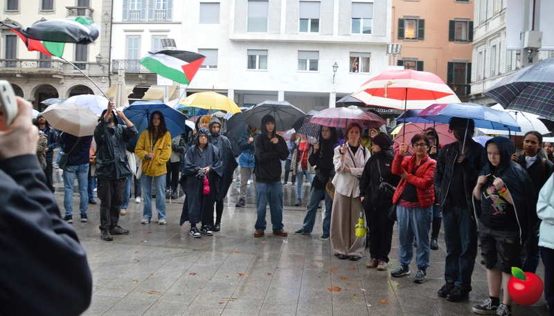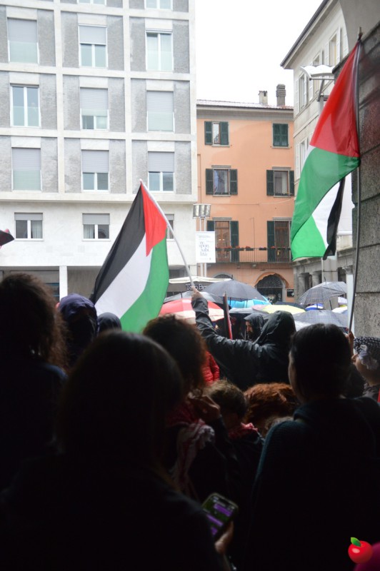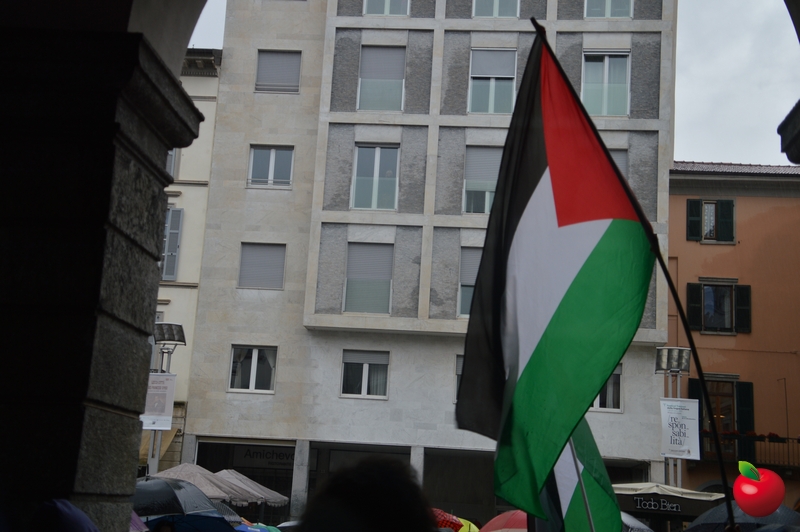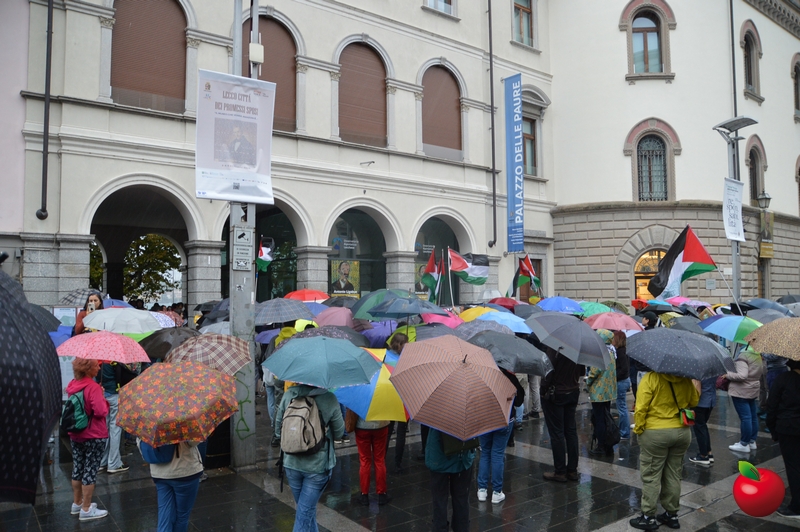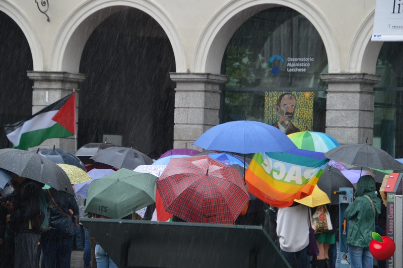 Lecco: in piazza XX Settembre sotto la pioggia il presidio per la Palestina all’insegna dell’antisionismo
