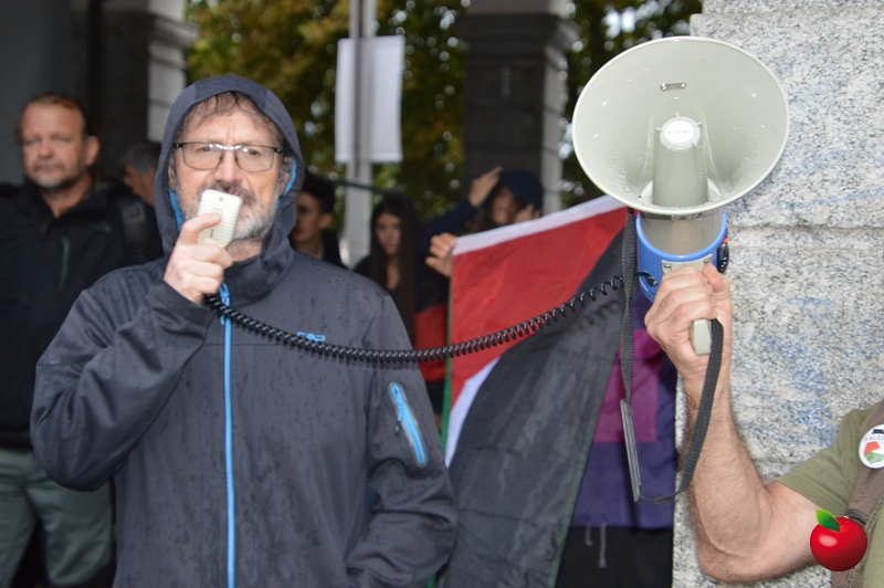 A coordinare il presidio Corrado Conti che ha tenuto il suo discorso d’apertura durissimo nei confronti di Israele e contro l’«l’ideologia sionista perché oggi per essere antifascisti bisogna essere antisionisti, senza la paura di essere dichiarati antisemiti: gli antisemiti sono i fascisti».