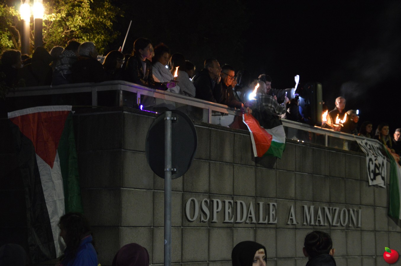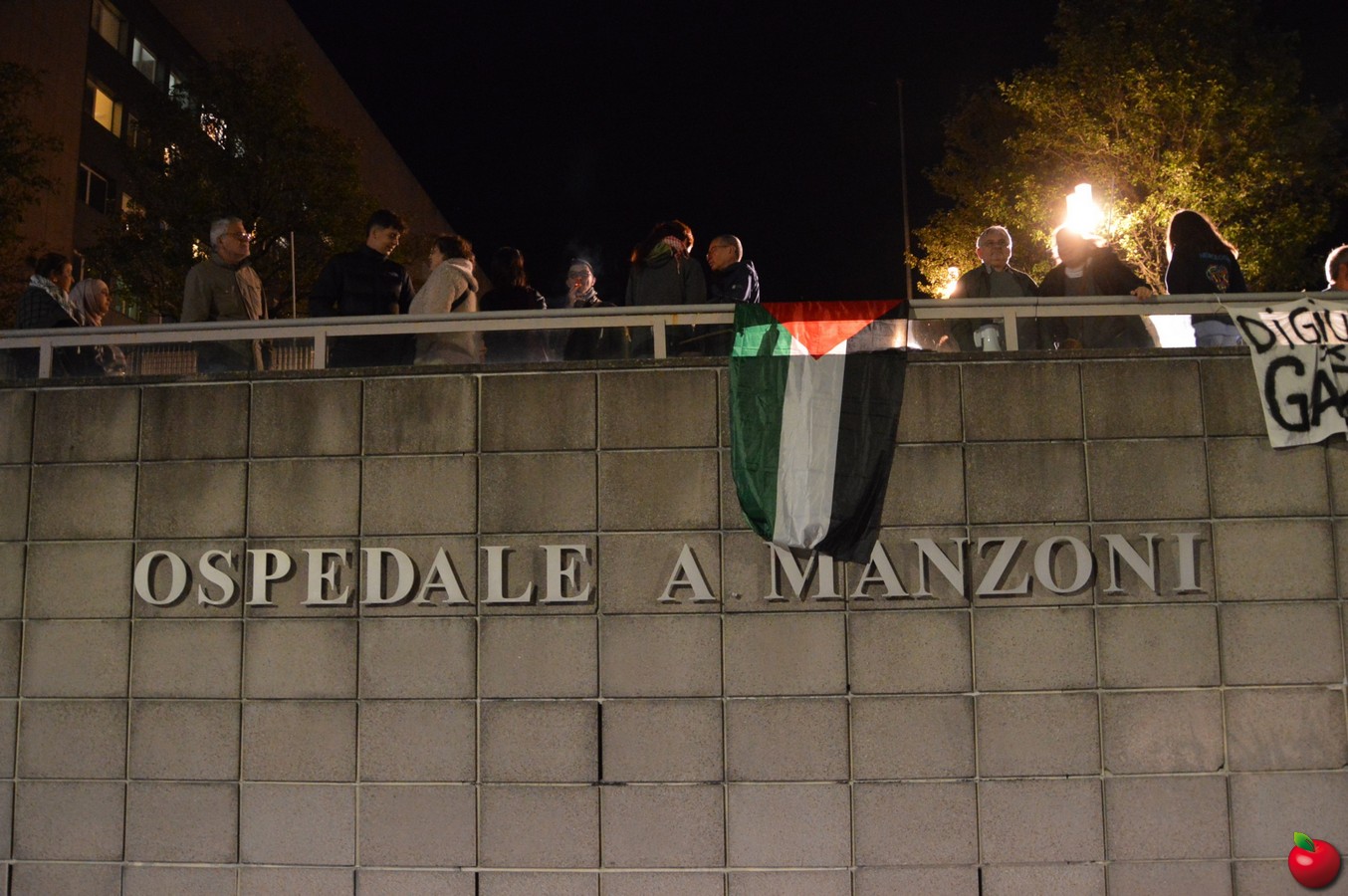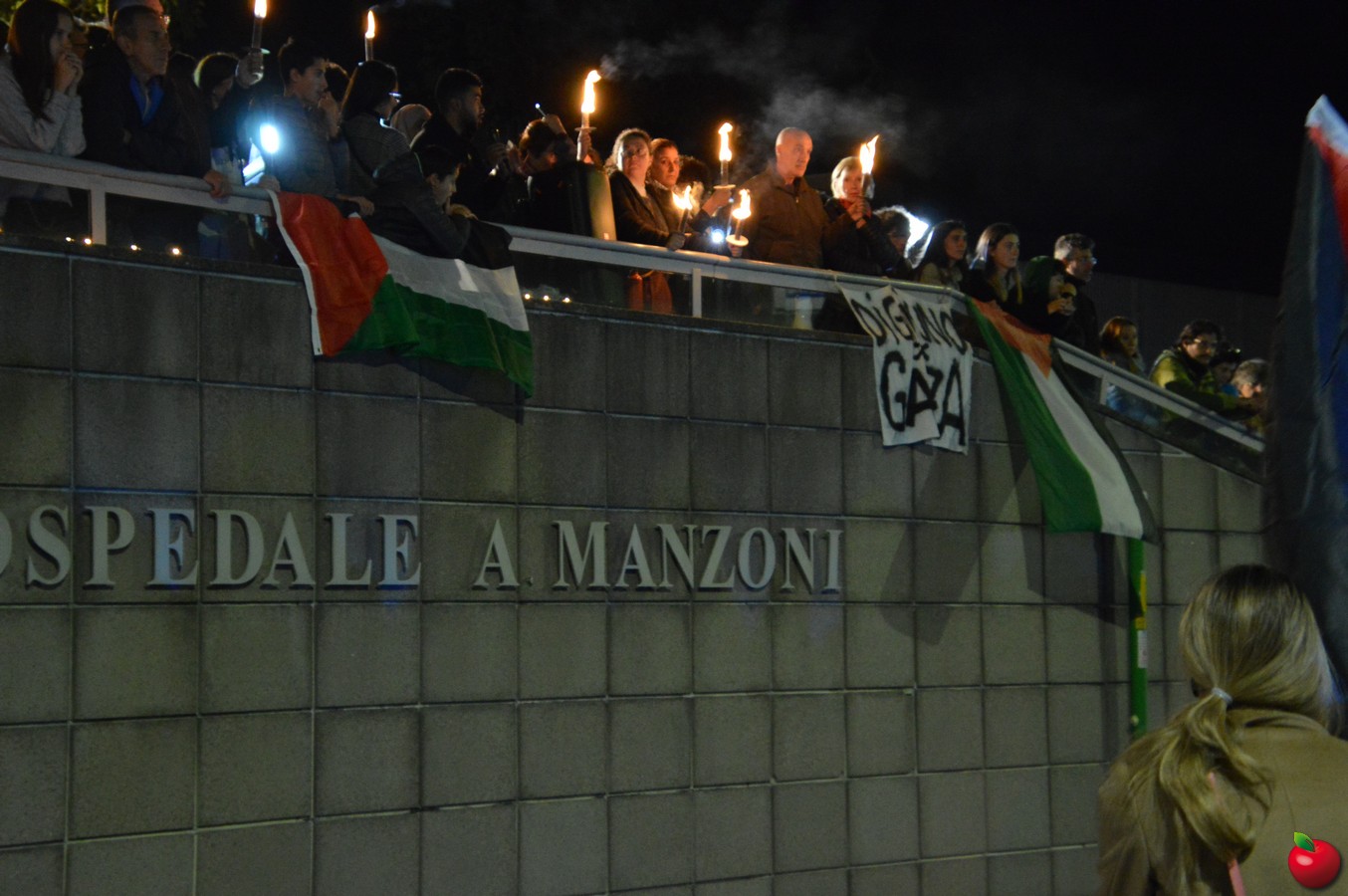 ''Luci sulla Palestina. Cento ospedale per Gaza'', il titolo dell’iniziativa organizzata a a livello nazionale. Della lista dei 1677 nomi, in ogni regione ne è stata letta una parte: 107 quelli scelti per la Lombardia e che appunto sono stati nominati a uno a uno e poi trascritti su foglietti appesi alla recinzione dell’ospedale.