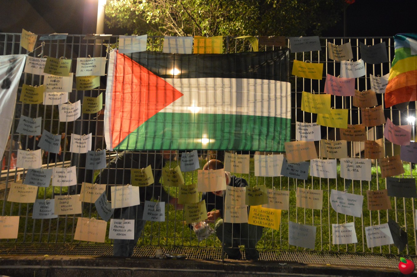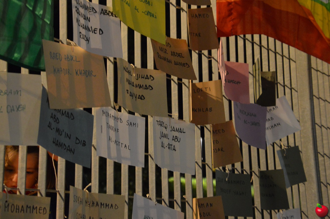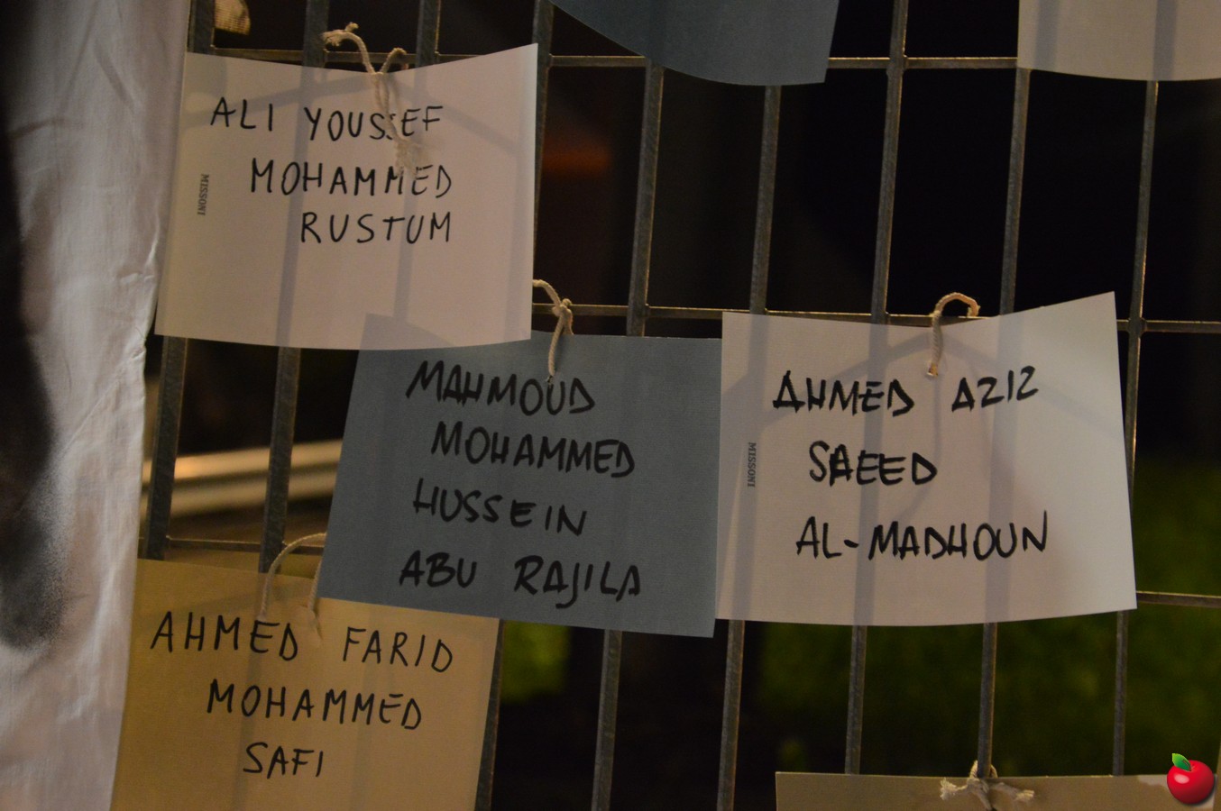 ''Luci sulla Palestina. Cento ospedale per Gaza'', il titolo dell’iniziativa organizzata a a livello nazionale. Della lista dei 1677 nomi, in ogni regione ne è stata letta una parte: 107 quelli scelti per la Lombardia e che appunto sono stati nominati a uno a uno e poi trascritti su foglietti appesi alla recinzione dell’ospedale.