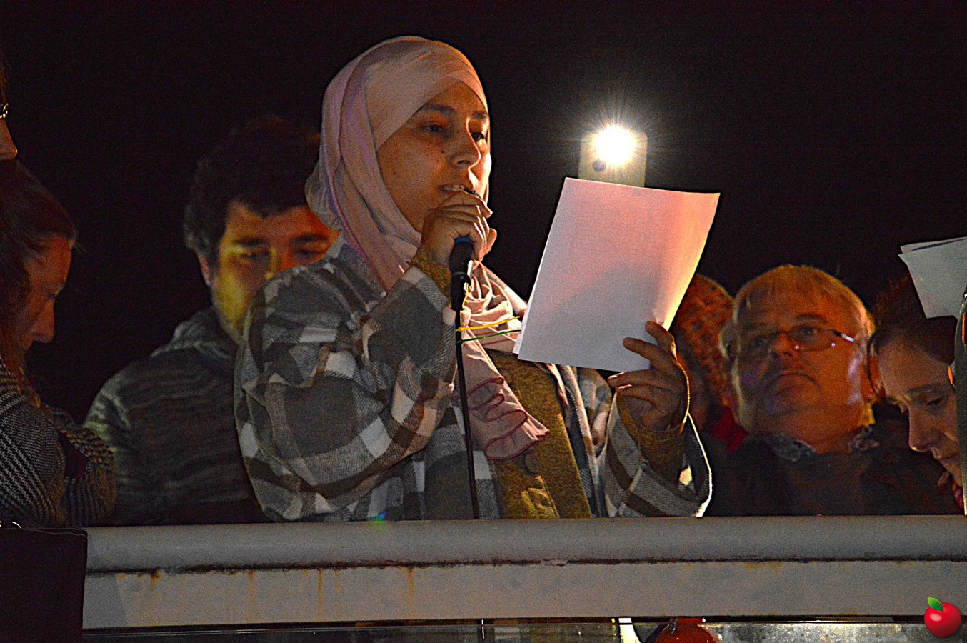 Dopo l’elenco dei nomi sono state lette testimonianze di medici palestinesi o stranieri che hanno operato in Palestina. Ed è stato letto anche un’angosciante vecchia lettera pubblica di Vik Arrigoni, l’attivista bulciaghese ucciso in Palestina nel 2011: raccontava di un suo incontro proprio con un medico che gli diceva di rinchiudere alcuni gattini in una scatola e poi di saltarci sopra finché non sentisse le ossa scricchiolare e fino all’ultimo miagolio. Di fronte a un episodio del genere tutto il mondo sarebbe inorridito e si sarebbe ribellato. Gli animalisti avrebbero scatenato polemiche. Ecco – gli diceva quel medico – forse era meglio nascere animali che palestinesi. Poi, aveva aperto uno scatolone sporco di sangue nel quale erano stati raccolti gli arti amputati in quei giorni.