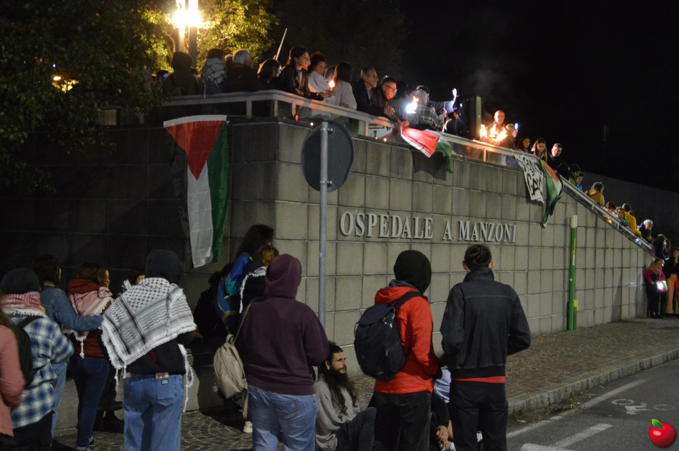 Anche parte del personale dell’ospedale Manzoni di Lecco ha voluto far sentire la propria voce di solidarietà con la Palestina, ricordando proprio medici e infermieri morti mentre facevano il loro mestiere negli ospedali di Gaza bombardati dagli israeliani. In contemporanea con altri 230 ospedali italiani, ieri sera lungo la scalinata che da via dell’Eremo sale al piazzale di accesso, sono stati letti i nomi dei sanitari morti a Gaza: 1677 secondo un calcolo non aggiornato agli ultimi giorni e pertanto suscettibile di essere ritoccato all’insù. Con loro, gli altri 230 reclusi nelle carceri israeliane.