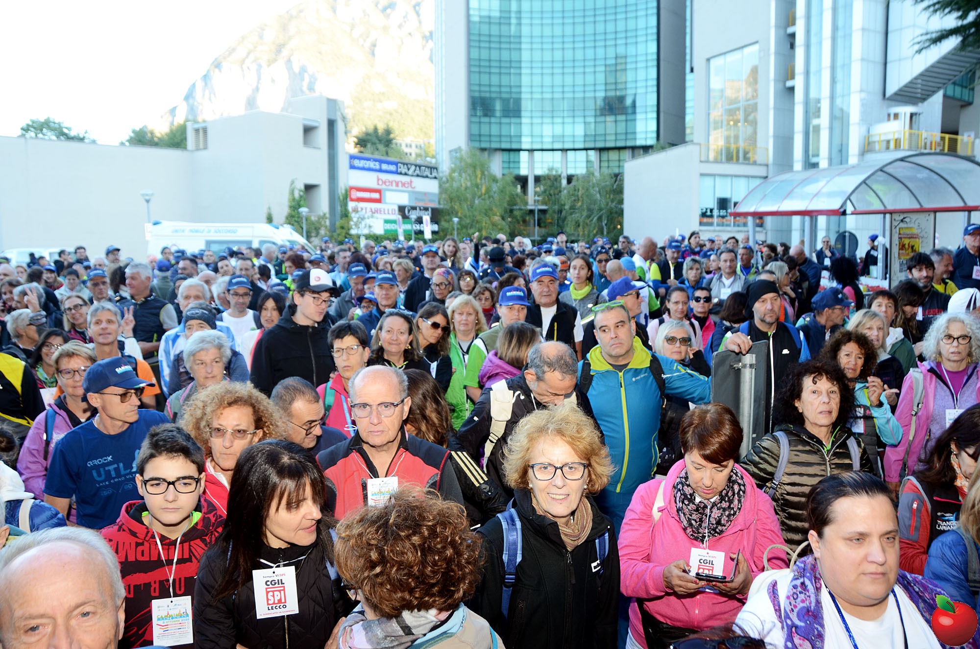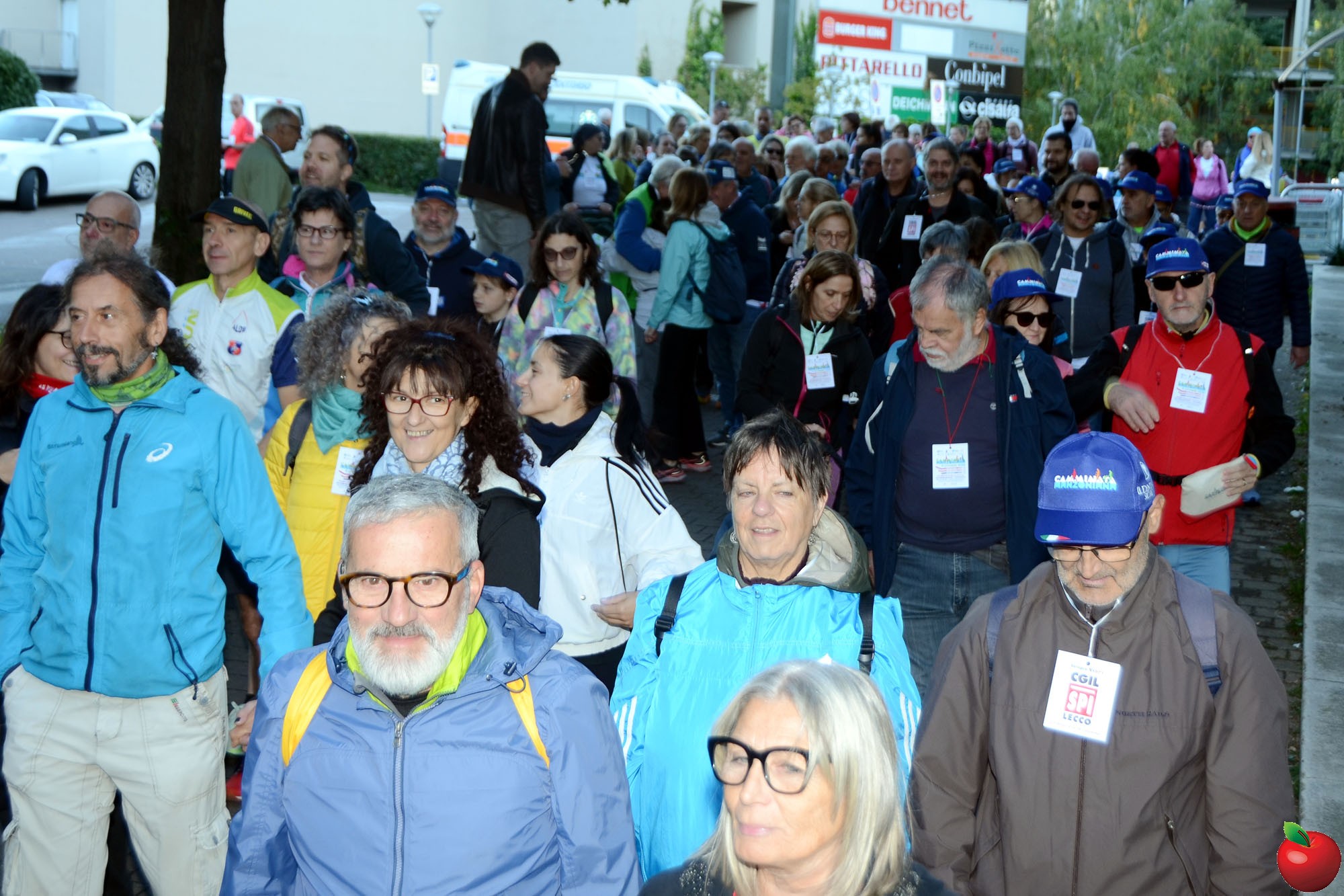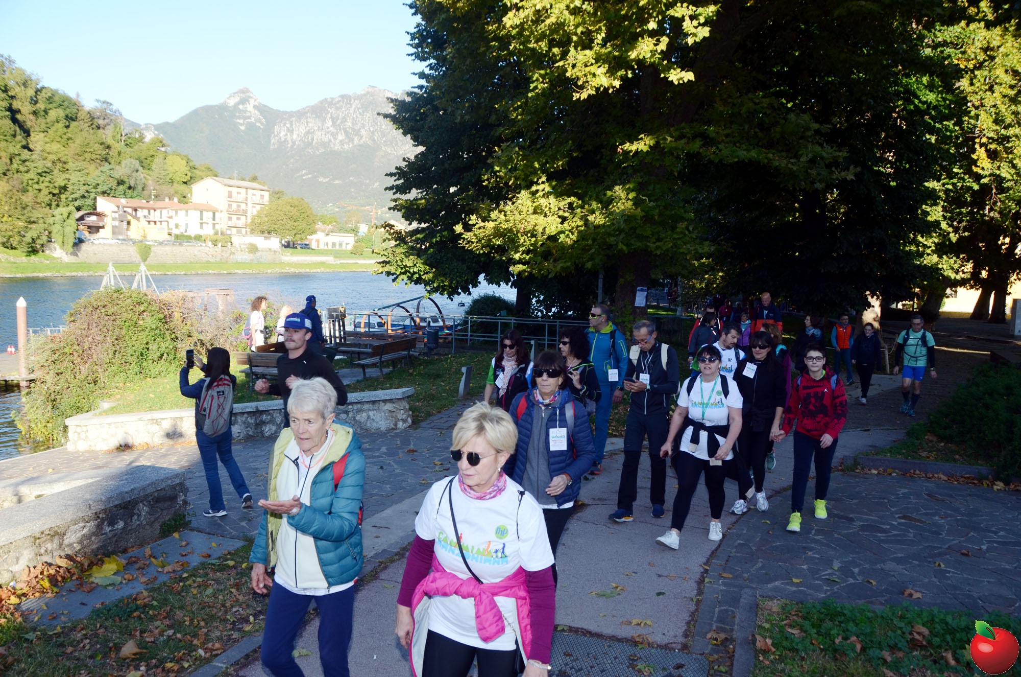 Tre i percorsi proposti, rispettivamente da 5 km e mezzo, 11 o ben 20, con partenza libera tra le 8.30 e le 9.30 dalla piazza Centro Commerciale La Meridiana, brulicante dunque già di buon ora, con intere famiglie e compagnie di amici pronte a mettersi in cammino, sospinte dall'arietta fresca del mattino lecchese.