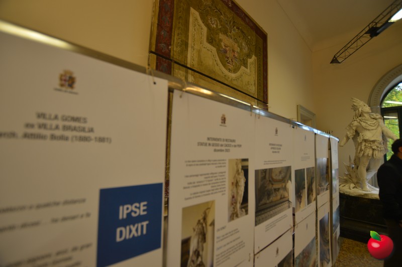 Per arricchire la visita, cercando di ricostruire l’atmosfera della dimora ai suoi tempi migliori, in una stanza del pian terreno rimesso in sesto dagli stessi volontari sono stati posti candelabri e appesi alle pareti quadri dei pittori Orlando Sora, Carlo Pizzi, Andrea Fleissner e Paolo Solari, la cui opera e importanza per la nostra città sono state illustrate da Gianfranco Scotti.