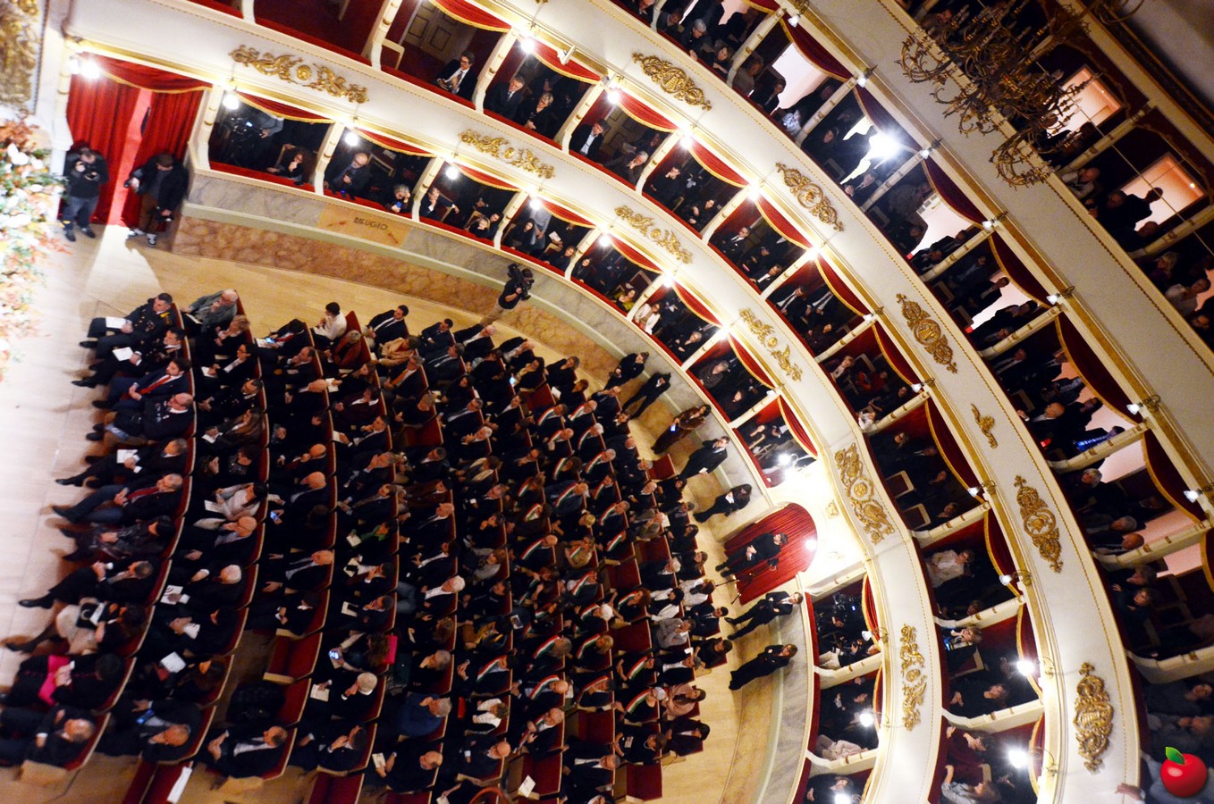 A portare la voce della Fondazione Teàrte è stato il presidente Eufrasio Anghileri, accolto da un lungo applauso. Con tono diretto e spontaneo, Anghileri ha parlato del valore sociale, turistico e culturale del teatro, della volontà di renderlo un luogo accessibile a tutti – con attenzione particolare ai giovani e agli studenti universitari – e della generosità delle donazioni private che hanno affiancato il sostegno pubblico, permettendo di costruire un programma ricco e di alto livello. Ha ringraziato l’Orchestra Sinfonica di Milano e con lui il Direttore Musicale, Emmanuel Tjeknavorian, protagonisti della serata inaugurale, definendo questa riapertura “una bella giornata per tutta la città”.