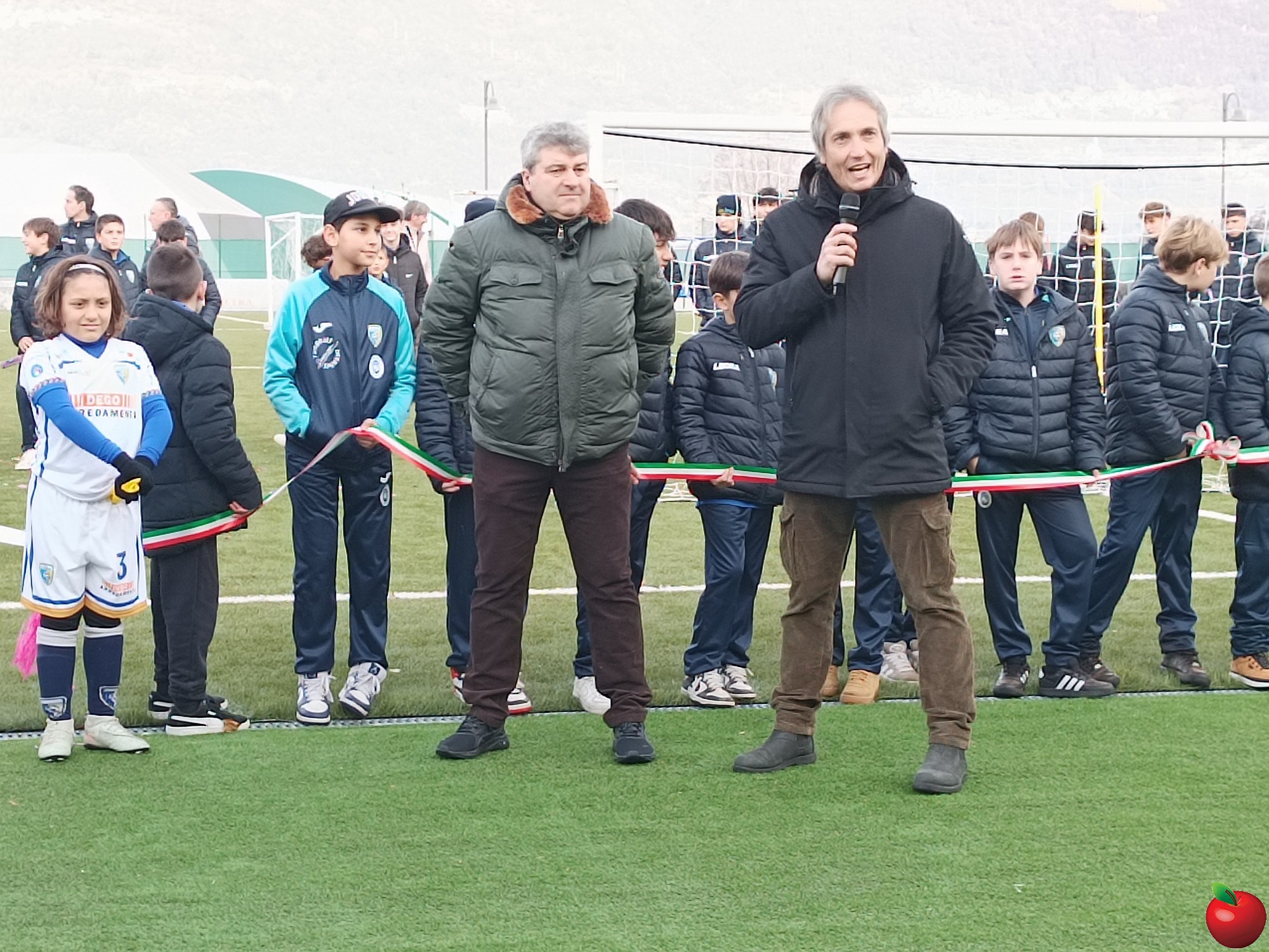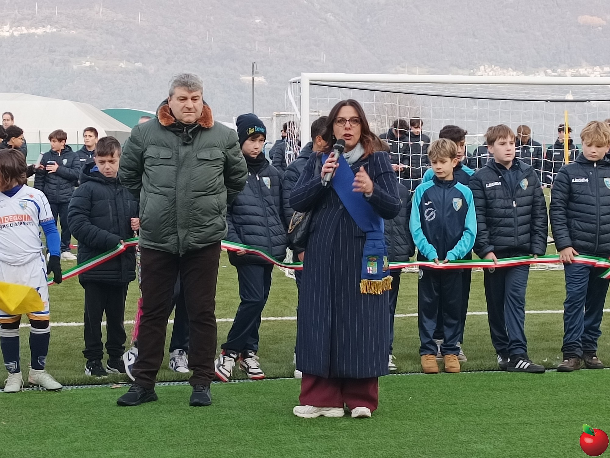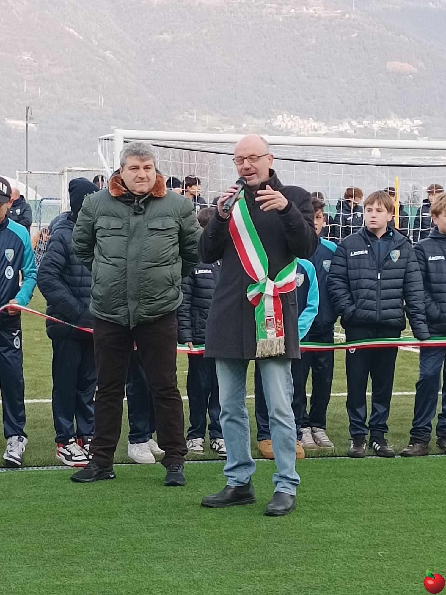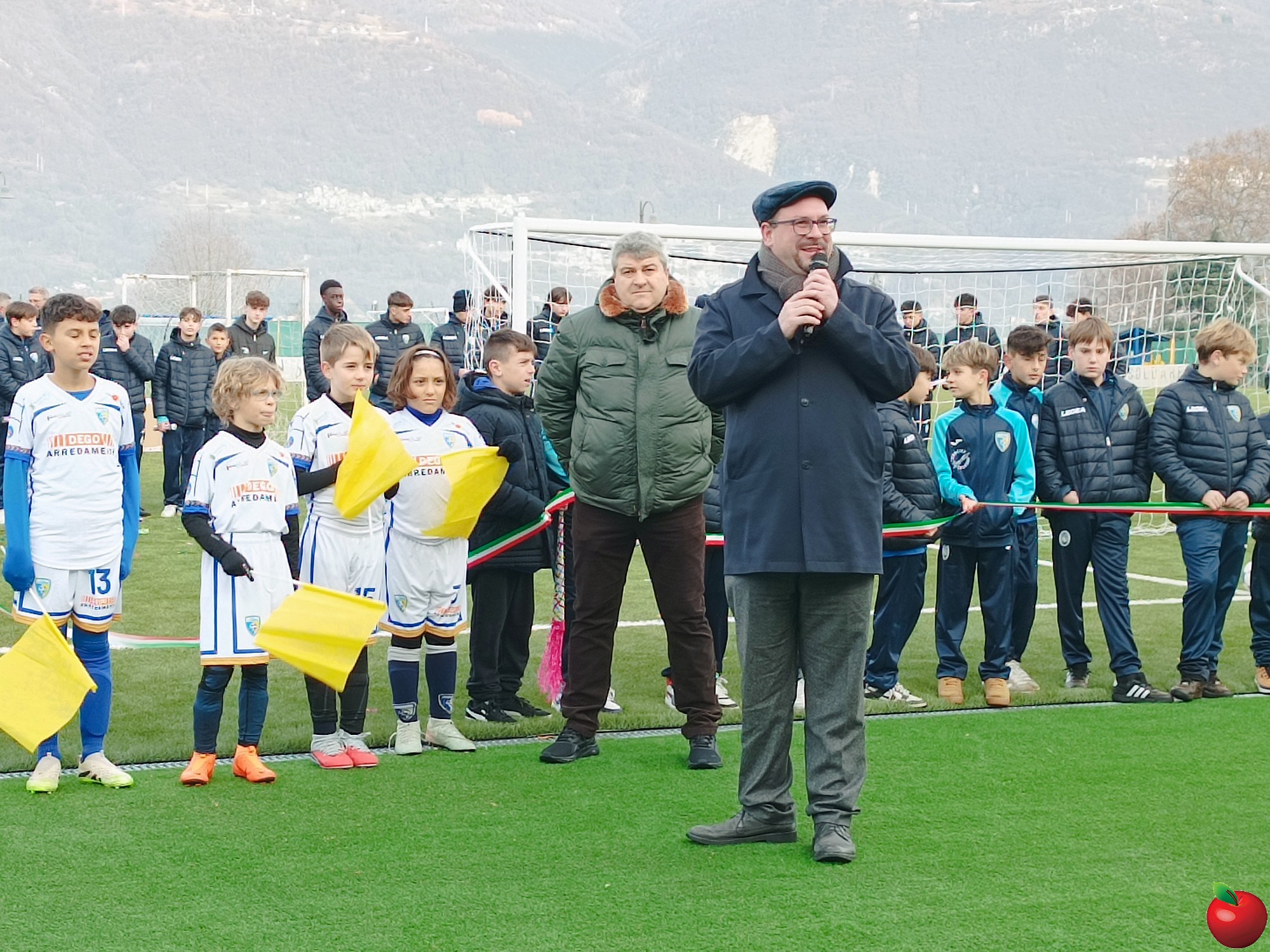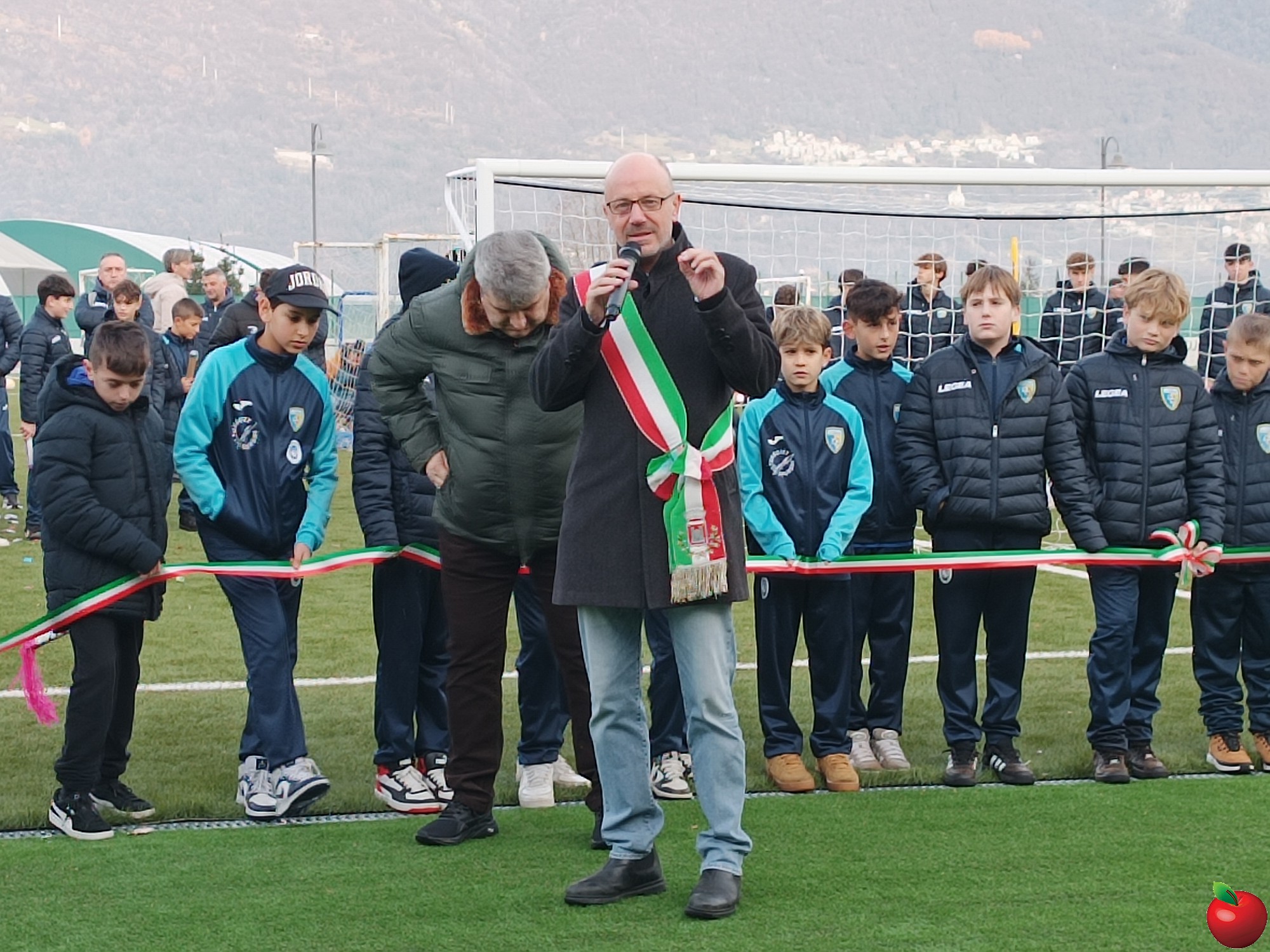 A prendere la parola per primo è stato il presidente Ernesto Maglia che ha spiegato come il termine dei lavori che hanno interessato il terreno di gioco sia solo il primo passo di ciò che sarà realizzato al centro sportivo che "si completerà con una palestra d'arrampicata e un'area tennis con i campi per il padel, già pienamente operativi grazie al club locale e altro ancora".