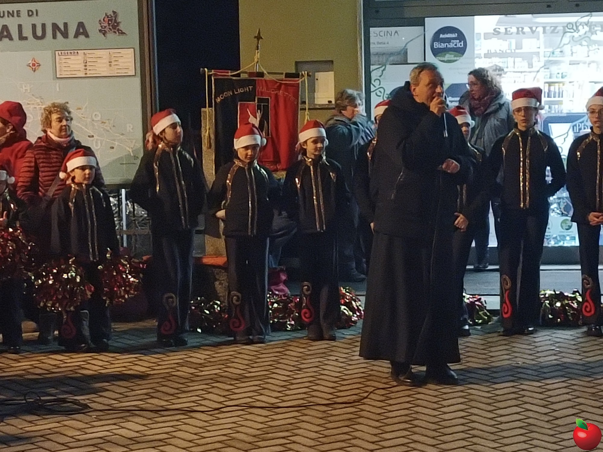 Il corpo musicale Santa Cecilia di Cortabbio con le Moon light Majorette, gli sbandieratori e i musici hanno intrattenuto con le loro esibizioni il numeroso pubblico intervento mentre i bambini della scuola primaria hanno recitato una poesia in inglese inerente il periodo natalizio, accompagnandola con una canzoncina.