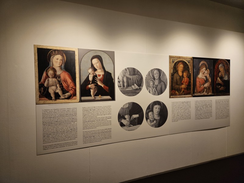 La mostra porta a Lecco tre opere fondamentali: la Nascita della Vergine, giunta in mostra dalla Galleria Sabauda di Torino; la Madonna con Bambino di Jacopo Bellini, proveniente dal convento domenicano del corpus domini a Venezia; la Madonna con Bambino attribuita a Giovanni Bellini, del Pinacoteca Malaspina di Pavia.