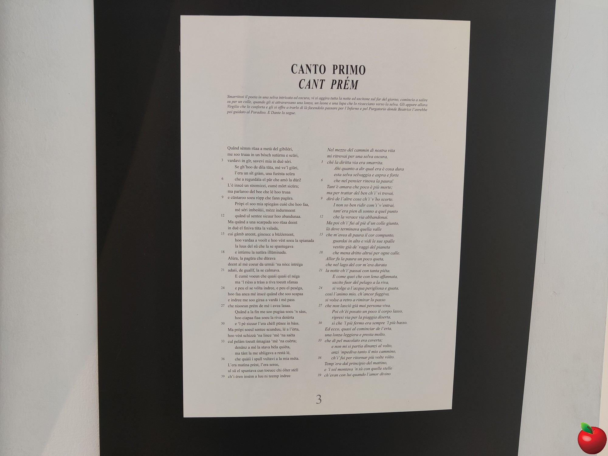 Un libro in grado di coniugare l’alta letteratura e le radici popolari del territorio lecchese. Questo è “La Divina Cumèdia – L’Infernu in del nòstr dialètt”, un volume che propone la traduzione dal volgare fiorentino al dialetto lecchese valmadrerese della prima cantica della Divina Commedia scritta da Dante. Il progetto è stato presentato nella mattinata di sabato 6 dicembre presso il Centro Culturale Fatebenefratelli a Valmadrera ed è stato accompagnato dall’inaugurazione dell’omonima mostra, testimoniando così il forte connubio tra scrittura e arte visiva.