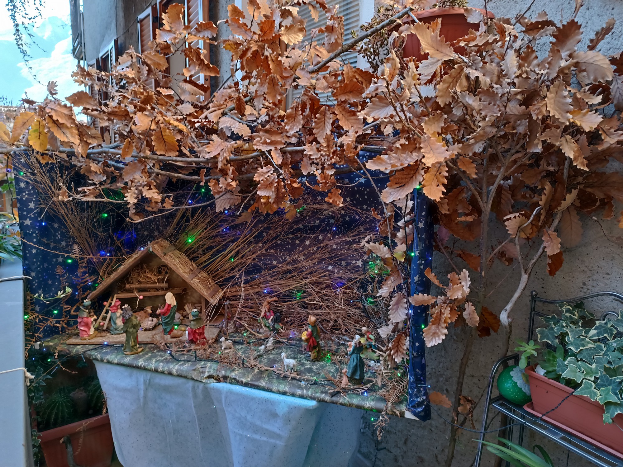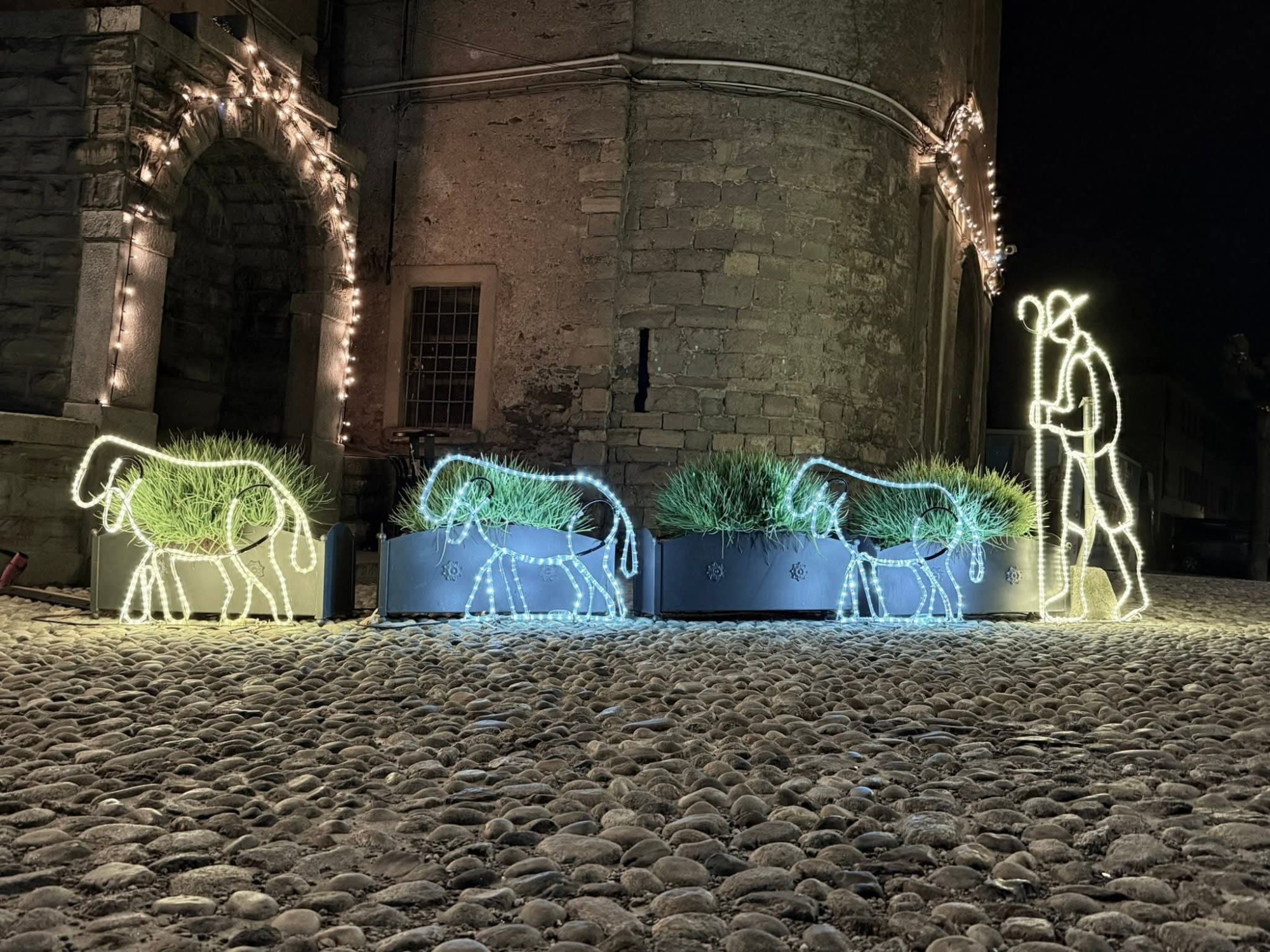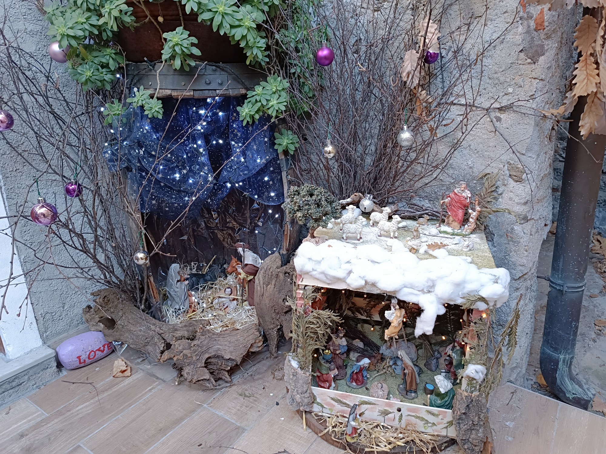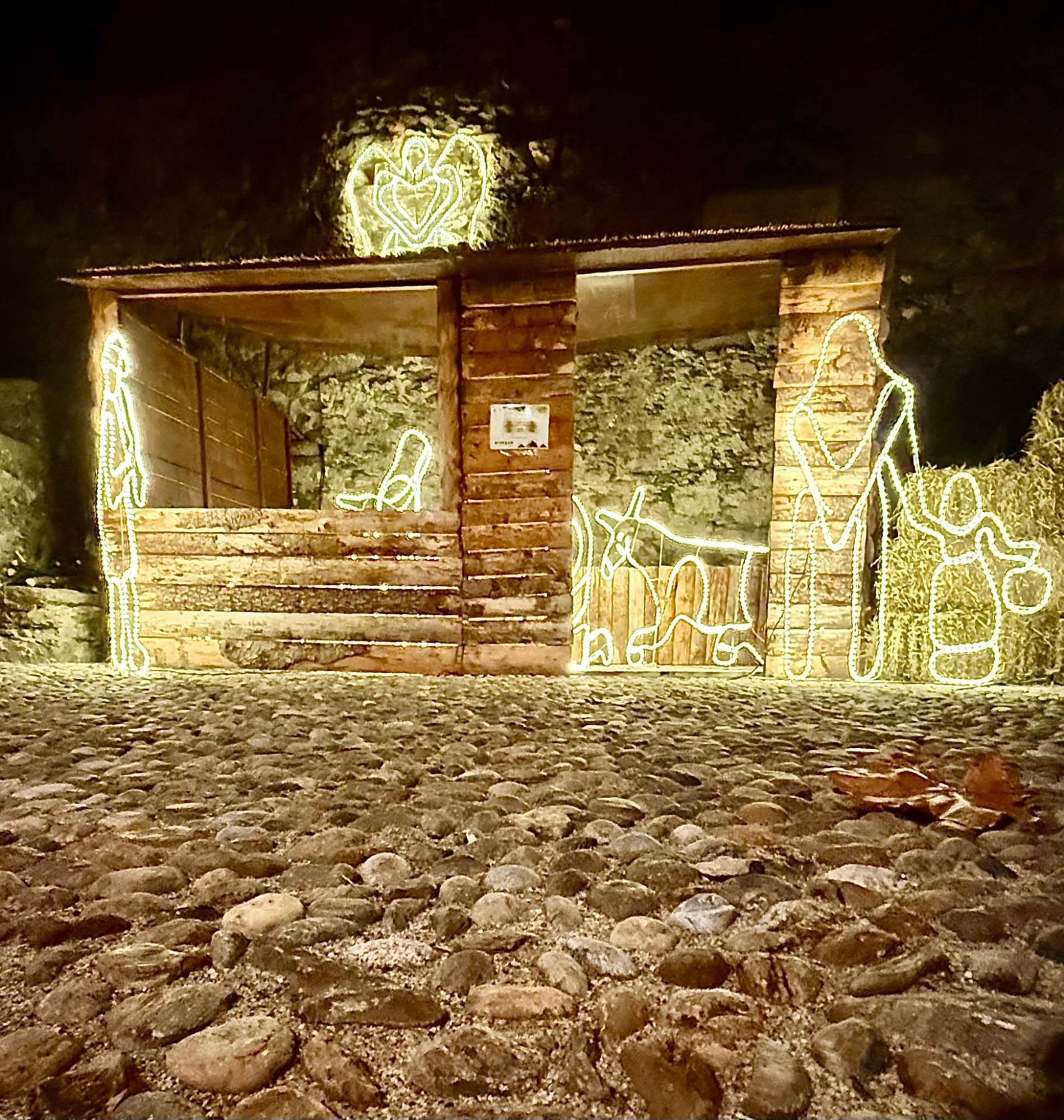 Giunti di nuovo al punto di partenza, proprio sotto le mura del castello medievale, si trova la capanna con Giuseppe, Maria e Gesù Bambino che vegliati da un angelo osservano quanto accade sul sagrato della chiesa, dove un'intera famiglia di pastore è intenta a dare indicazioni ai passanti.