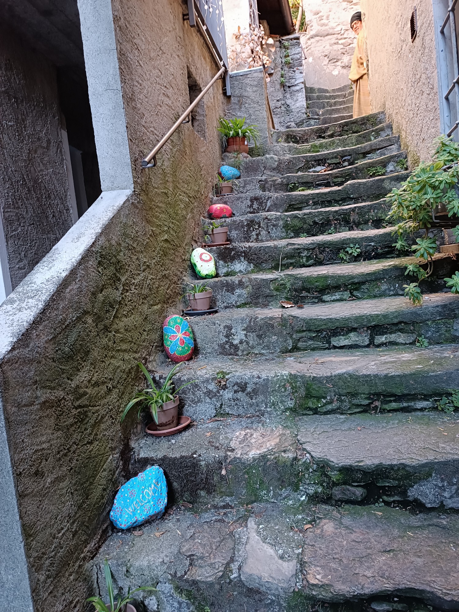 Seguendo il percorso indicato dalle frecce, dopo essere scesi dalla navetta che trasporta i visitatori da Dervio, si incontra per prima la bottega del falegname, ubicata in una cantina a volta, in cui il proprio intaglia il legno e lo modella per ottenere quanto desidera. Scendendo altri gradini che portano al lago, si trovano quelli che una volta erano i punti di approvvigionamento familiari, ovvero la bancarella del fruttivendolo e il fornaio.