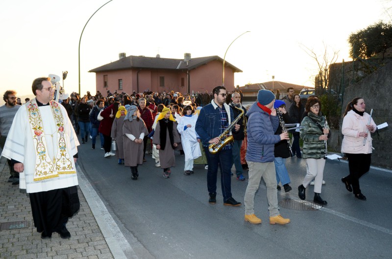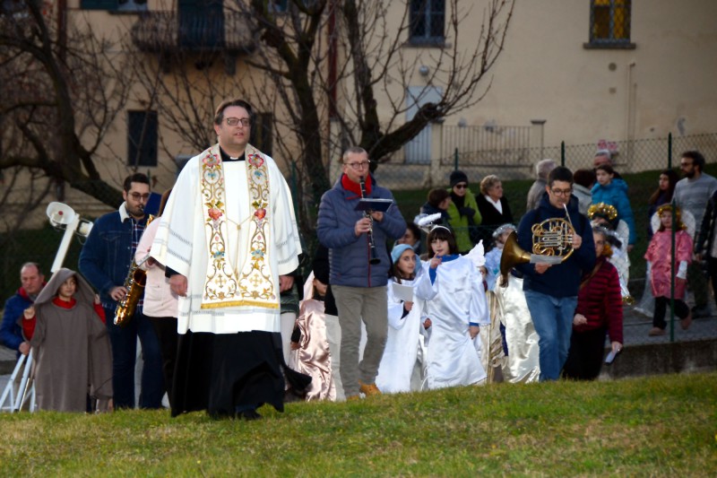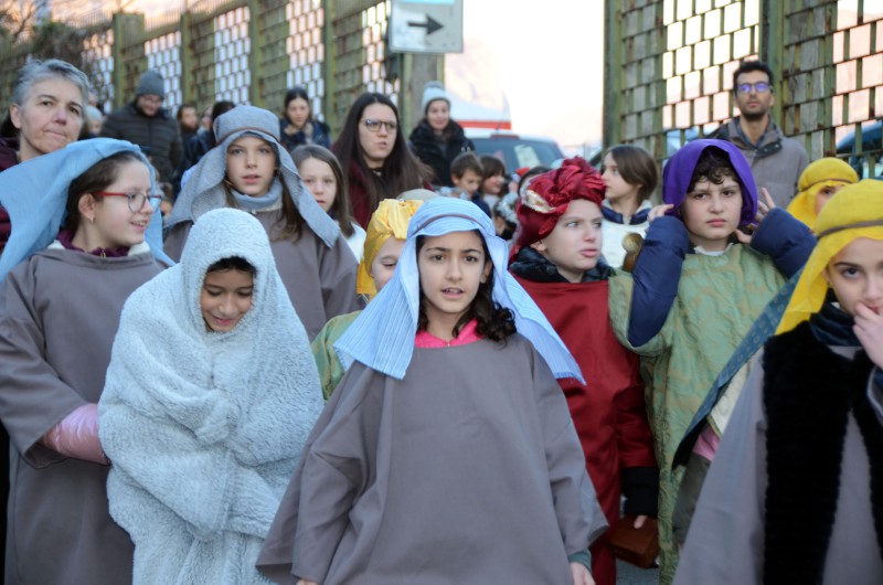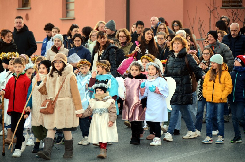 Già gli scatti, firmati da Stefano Cardini, sintetizzano infatti al meglio l'iniziativa, promossa dalla parrocchia, sotto la guida di don Luca Civardi, alla testa anche del corteo che, dalle scuole, ha preso le mosse verso la locale Betlemme, dove i tanti partecipanti si sono radunati attorno alla capanna realizzata per ospitare la rappresentazione della Natività.