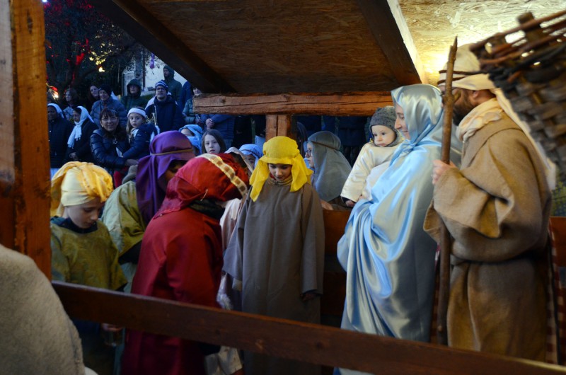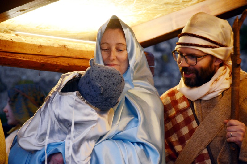 Come si avverte anche il raccoglimento, di bambini e adulti, in un vero momento di comunità, dinnanzi a quel Gesù Bambino – in carne ed ossa tra le braccia della sua mamme e sotto lo sguardo tenero del suo papà – che riconduce al vero spirito del Natale, eliminando il superfluo e il commerciale per riflettere sull'essenziale.