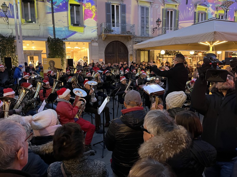A fianco dei musicisti, in piazza, non sono mancati inoltre i banchetti solidali, prima fra tutti quello di Telethon, impegnata con la vendita di panettoni e pandori, a ricordare come il Natale possa essere anche un’occasione concreta di vicinanza e sostegno.