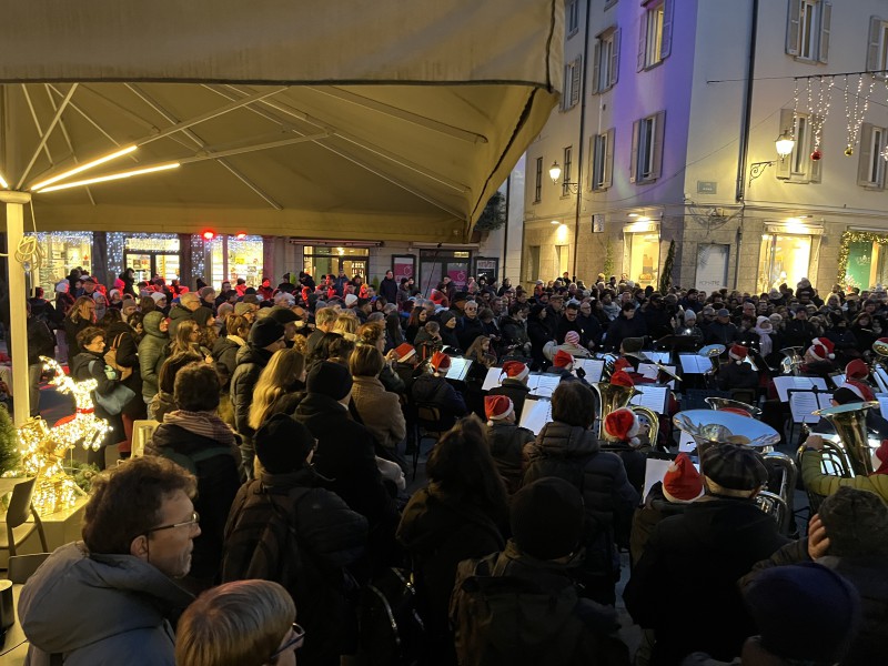 In un periodo in cui molte bande e corpi musicali sono impegnati in concerti, saggi scolastici ed eventi natalizi, non è sempre scontato riuscire a radunare un “ensemble” numeroso di ottoni gravi. Proprio per questo, il ritrovo di oggi pomeriggio in piazza XX Settembre ha assunto un valore particolare: chi ha risposto all’appello lo ha fatto per autentico spirito natalizio e per amore verso questi strumenti, spesso considerati comprimari ma capaci, quando messi al centro della scena, di esprimere una sorprendente ricchezza melodica.