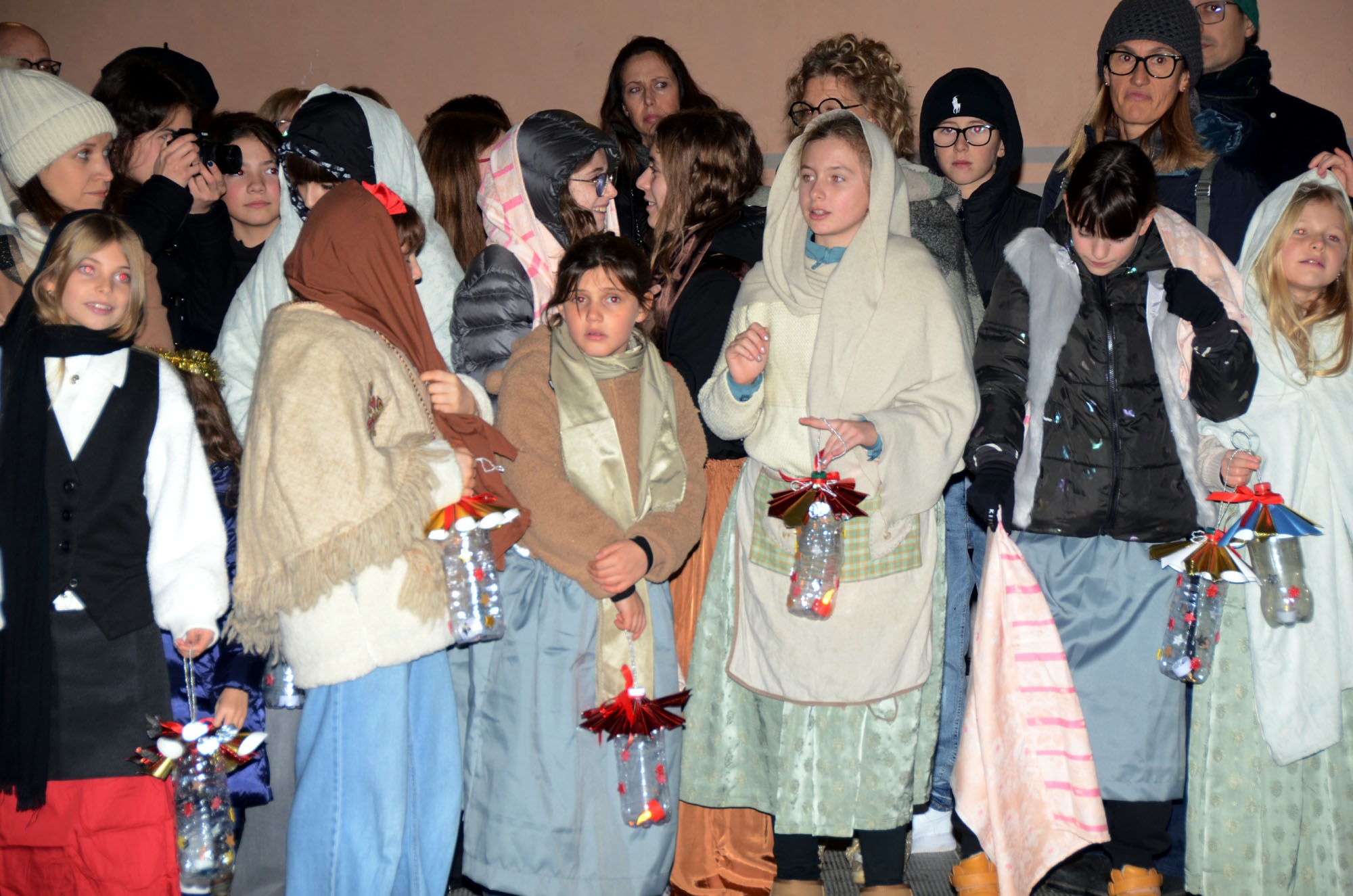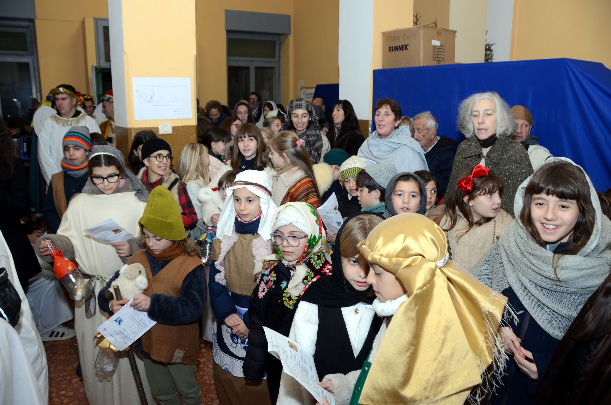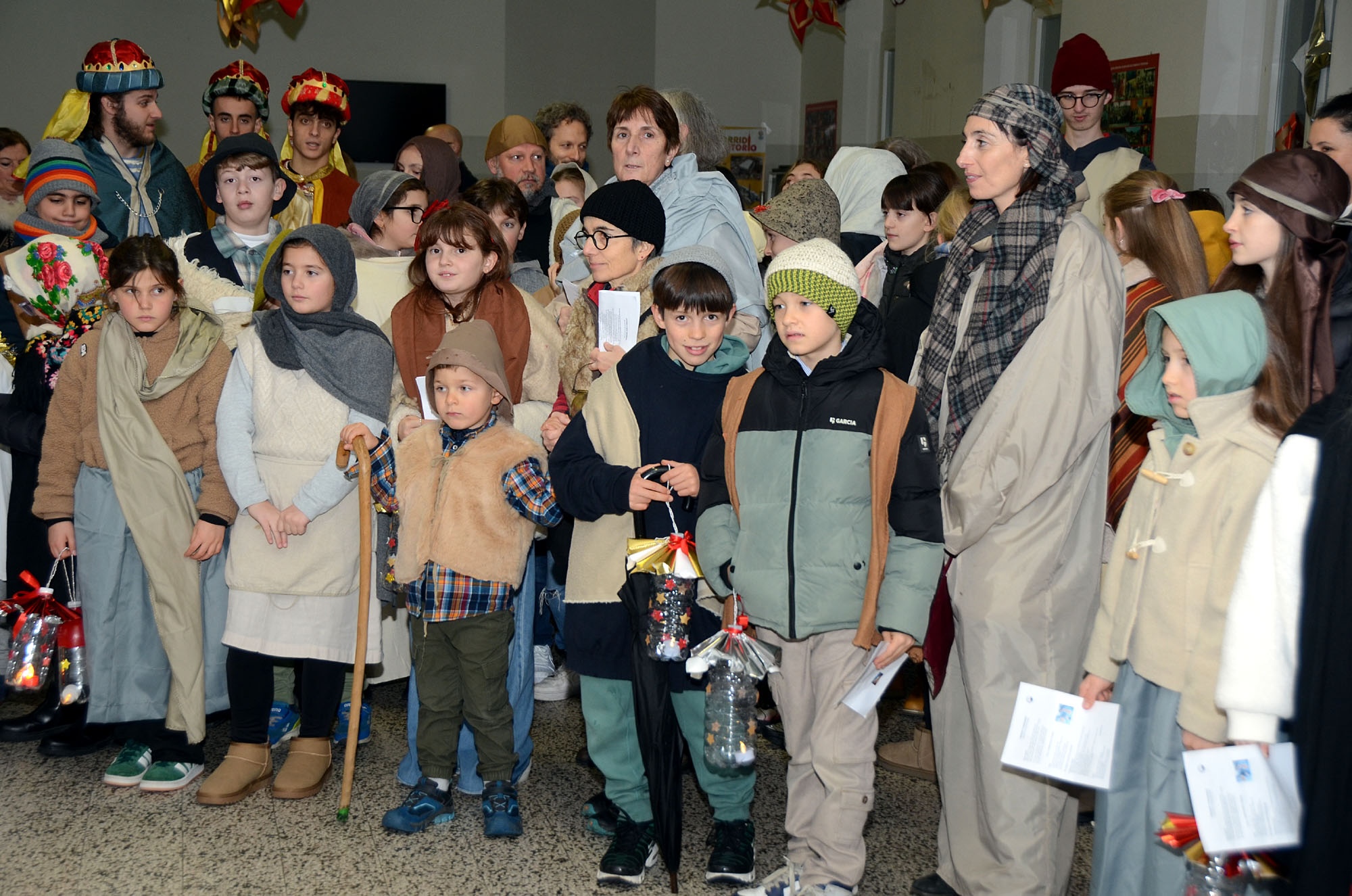 La pioggia ha scombussolato i piani, costringendo gli organizzatori a rivedere la "logistica", ma non ha assolutamente intaccato l'entusiasmo, soprattutto dei più piccoli che, chi eccitato, chi manifestando poi "in scena" timidezza, sono entrati nella parte, seguendo di ambientazione in ambientazione, la riflessione "animata" dai grandi e da don Marco.