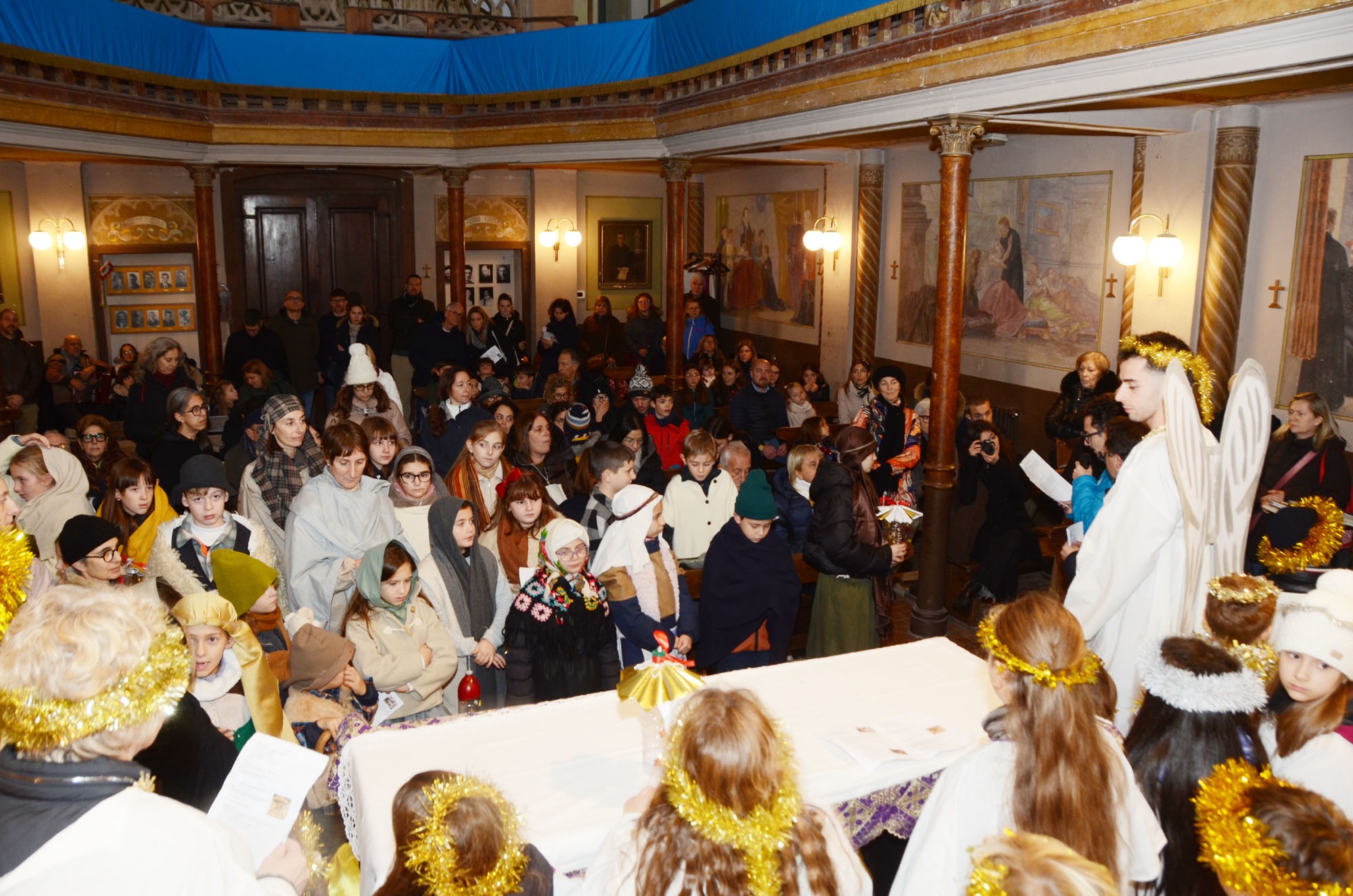 Quattro i momenti rappresentati, dall'Annunciazione all'arrivo dei Re Magi, alla presenza di spettatori attenti e partecipi, coinvolti anche nei canti della tradizione, con i suonatori di fisarmonica ad accompagnare il cammino di sala in sala, creando quell'atmosfera propria delle feste, tra pastorelli e angioletti, nella piccola Betlemme di Lecco.