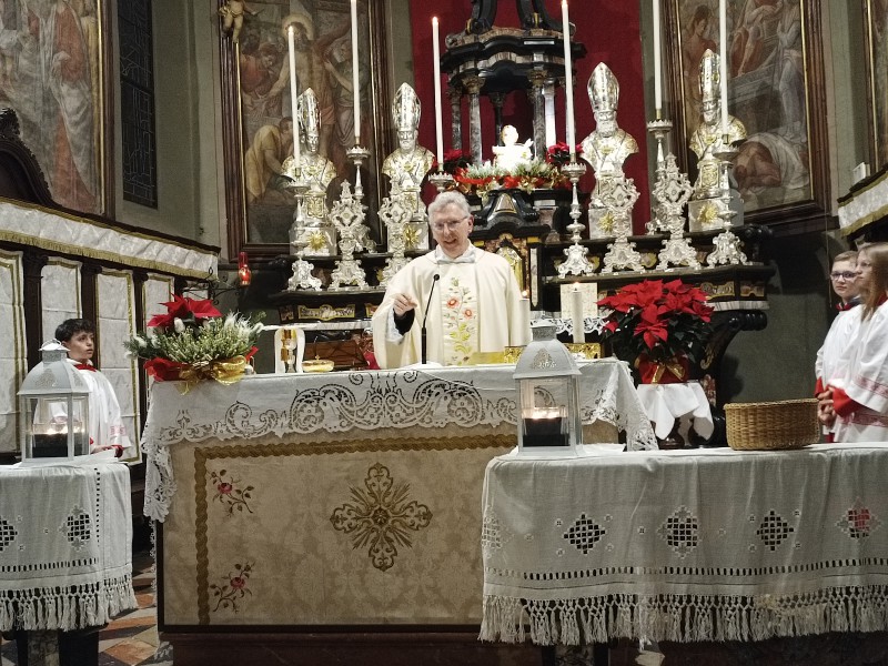 Ha poi raccontato, come è solito fare, due aneddoti personali. Il primo legato a quanto accaduto poco prima, recandosi al Pian delle Betulle. "Il bagliore della neve rischiarava tutto, come luce che ha condotto alla chiesa per celebrare la messa". Il Salvatore, dunque, ha aggiunto, è nato per tutto il mondo. Ma evidentemente, in una società sempre più secolarizzata, non tutti se ne accorgono. E per spiegarlo, don Bruno, ha citato la la capanna vista giorni fa in aeroporto a Malpensa: "all'interno non c'erano le figure di Maria e Giuseppe, bensì delle palle di diversi colori, meravigliose ma in quel luogo di passaggio per molti, ho trovato l'assenza di Gesù".