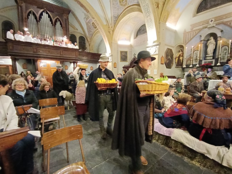 Il tutto mentre i fedeli continuavano ad ammirare la sacra rappresentazione, con i figuranti che, al momento dell'offertorio hanno portato all'altare i prodotti del lavoro e gli animali di stalle e pollai.