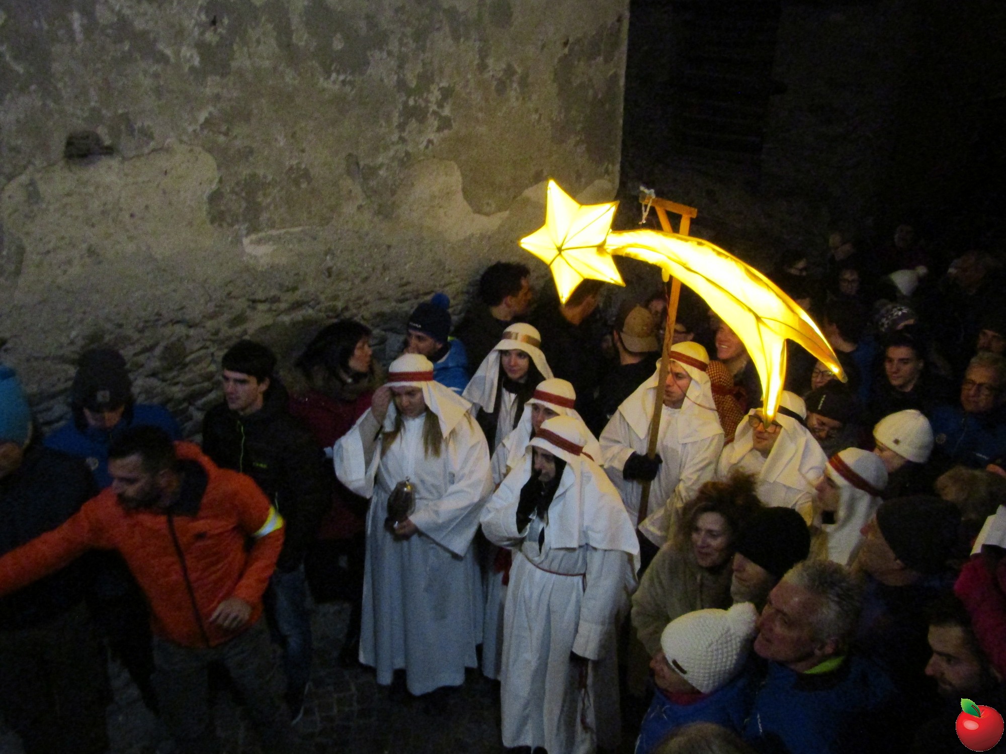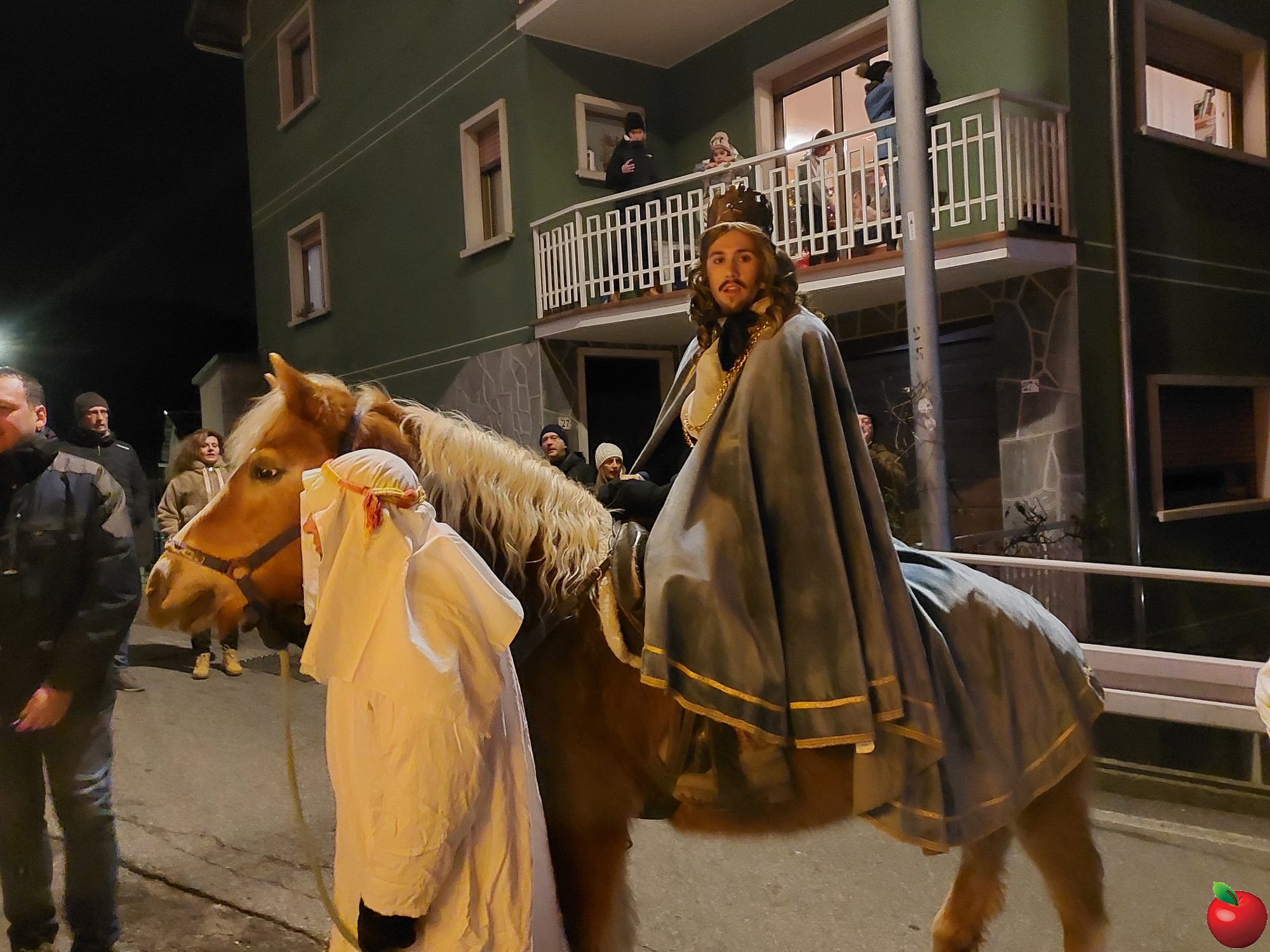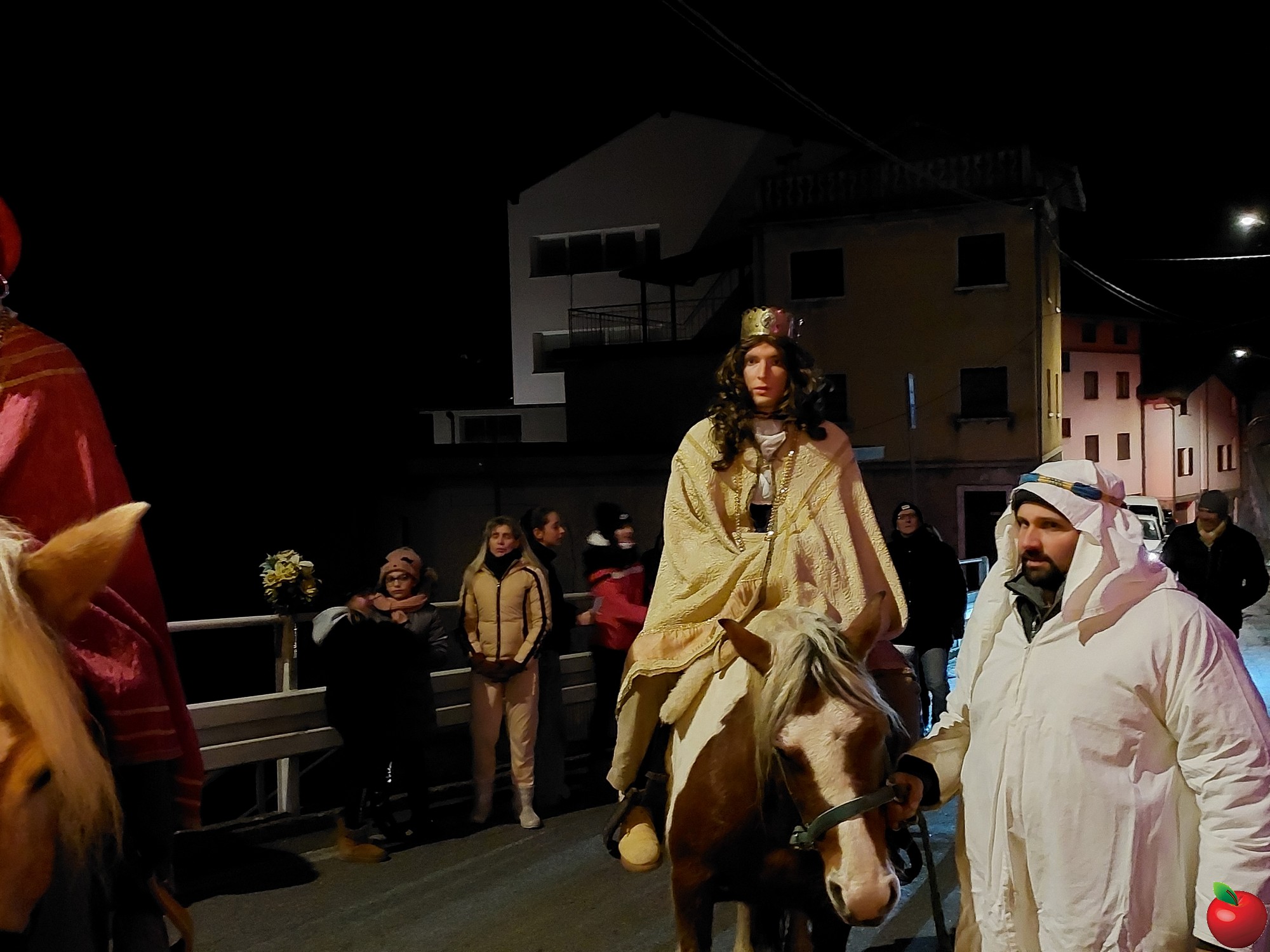 Quest’anno sono ricaduti sui coscritti della classe 2003 l’onere e l’onore di interpretare i tre Magi a cavallo e i beduini e pastorelli al loro seguito, così come di rappresentare il presepe vivente in piazza della chiesa. Intorno alle 20.30, il corteo ha preso il via dalla zona dell’Elephant Pub, percorrendo Via Roma prima di addentrarsi tra le strette viuzze del centro storico del “paese delle lame”. Ad “aprire la fila”, facendo da guida a tutti i presenti, la splendida e “storica” stella cometa, portata anch’essa dai giovani coscritti.