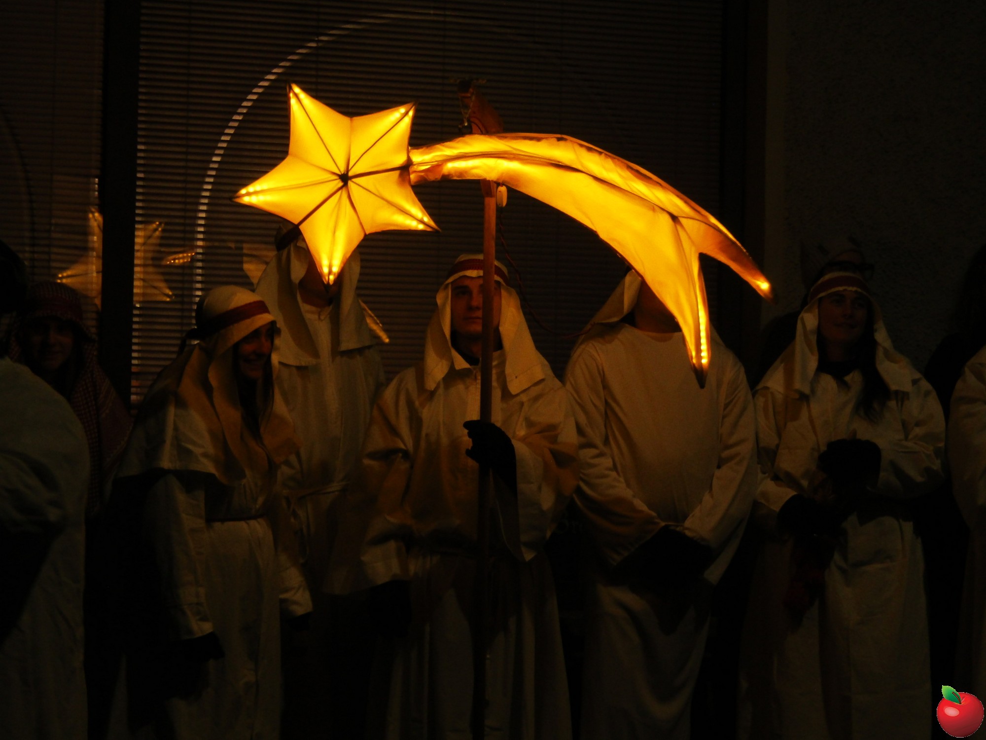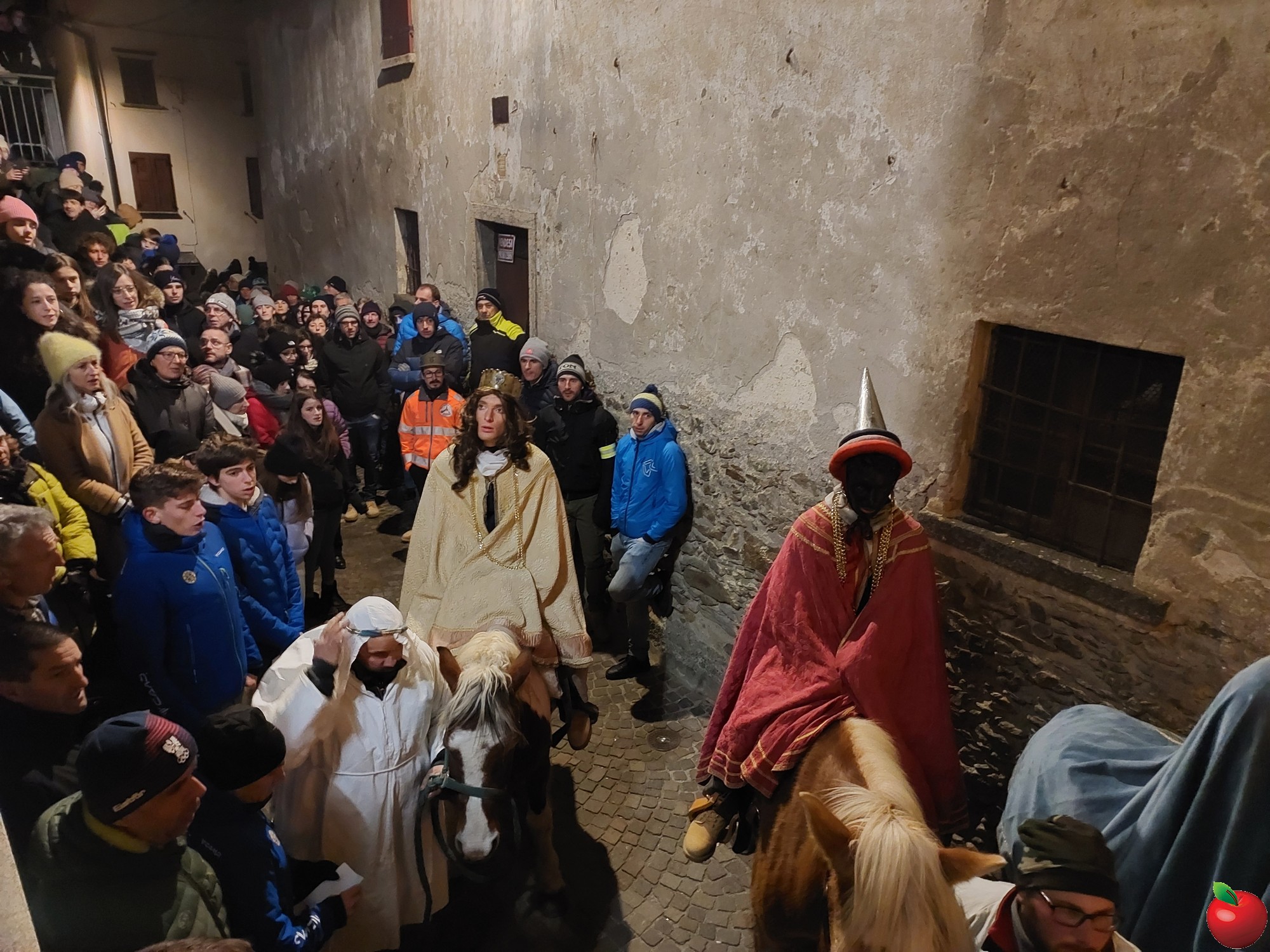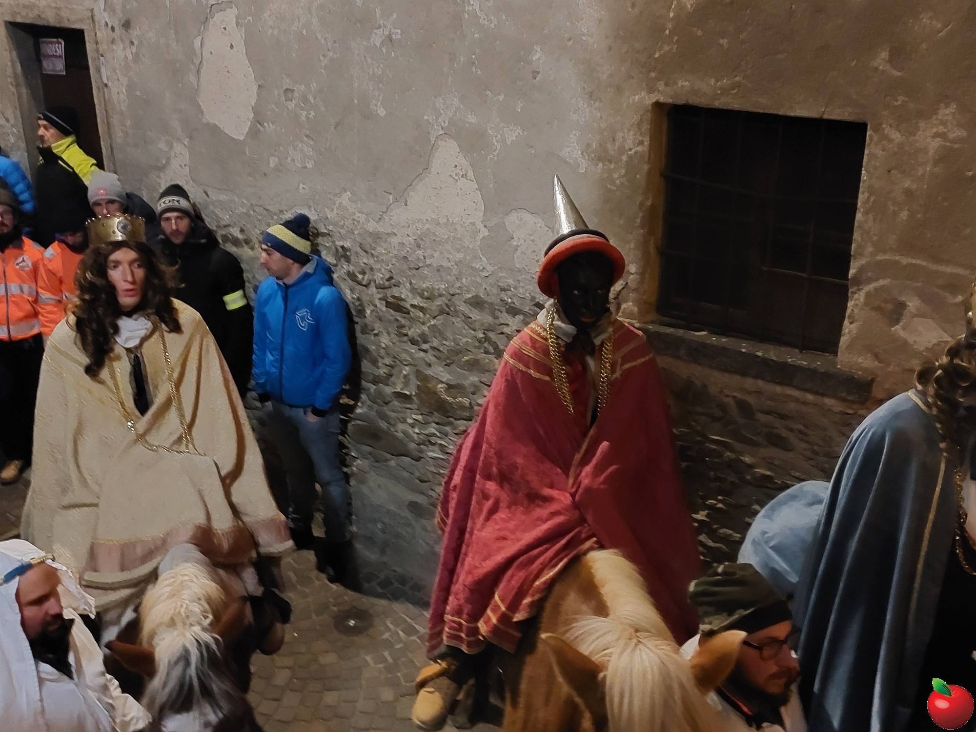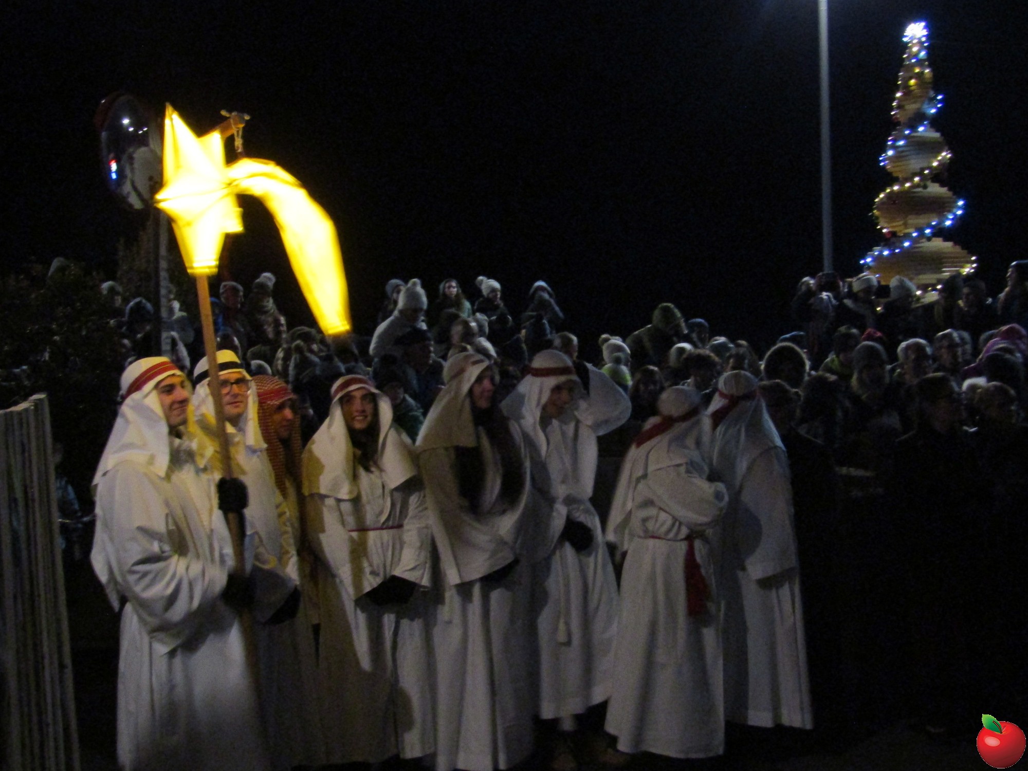 Quest’anno sono ricaduti sui coscritti della classe 2003 l’onere e l’onore di interpretare i tre Magi a cavallo e i beduini e pastorelli al loro seguito, così come di rappresentare il presepe vivente in piazza della chiesa. Intorno alle 20.30, il corteo ha preso il via dalla zona dell’Elephant Pub, percorrendo Via Roma prima di addentrarsi tra le strette viuzze del centro storico del “paese delle lame”. Ad “aprire la fila”, facendo da guida a tutti i presenti, la splendida e “storica” stella cometa, portata anch’essa dai giovani coscritti.