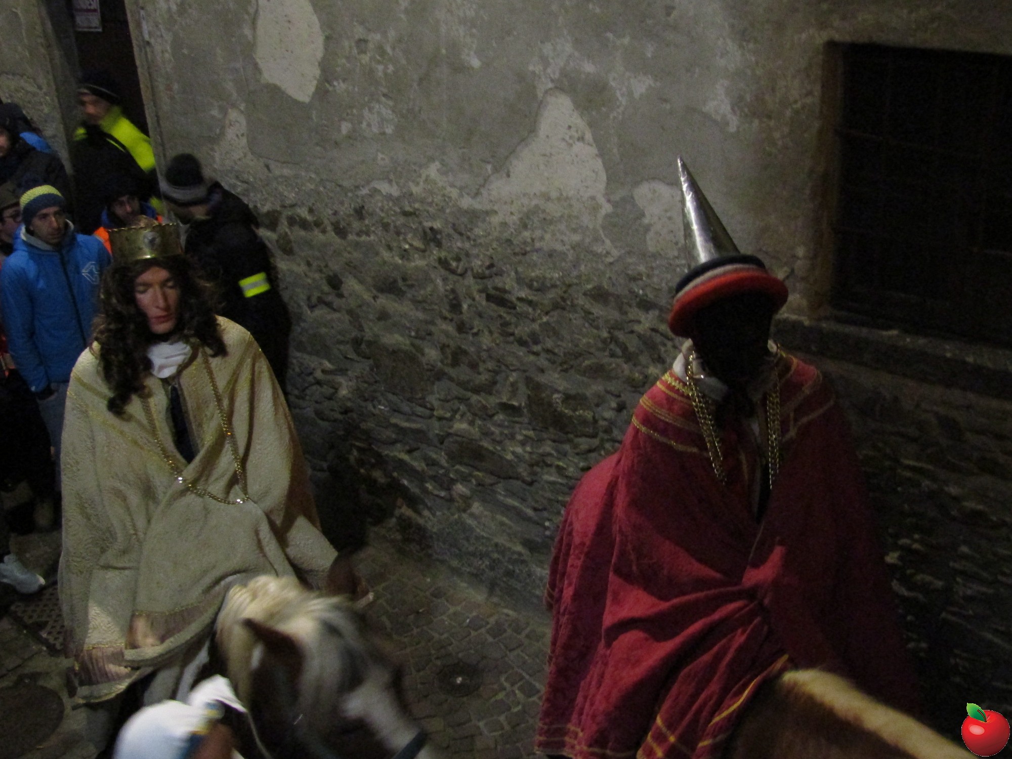 Intorno alle 23.30 il corteo ha raggiunto la piazza della chiesa, presso la quale è stato eseguito per un’ultima volta il canto nella sua versione integrale, mentre i tre Magi portavano oro, incenso e mirra in dono al Bambin Gesù.