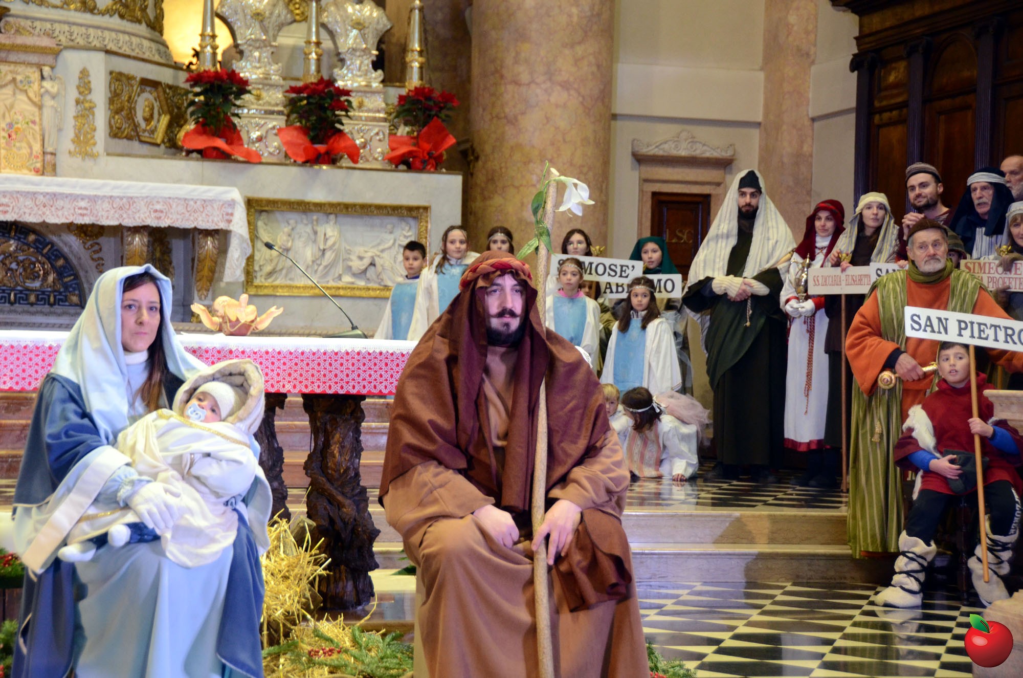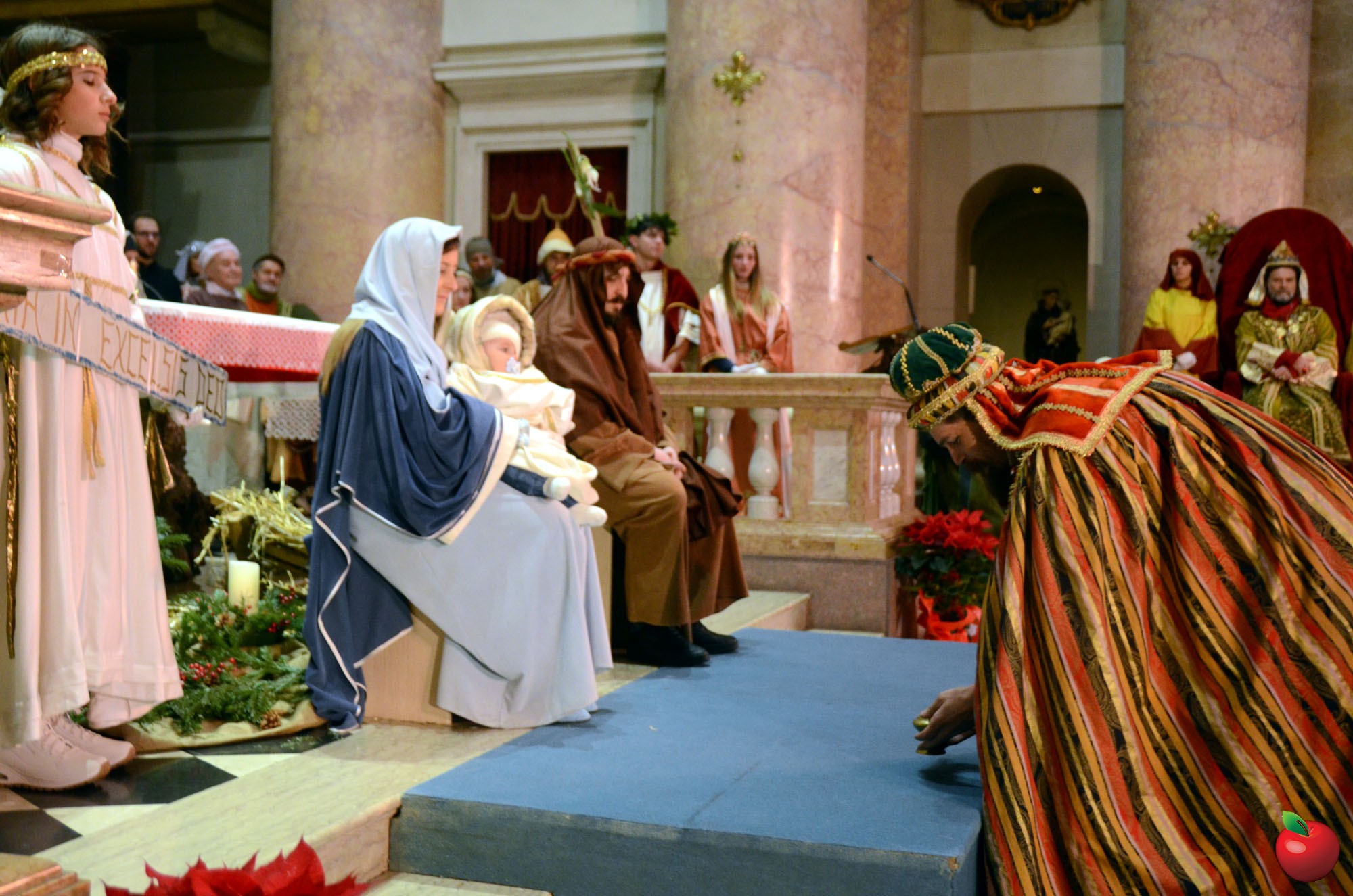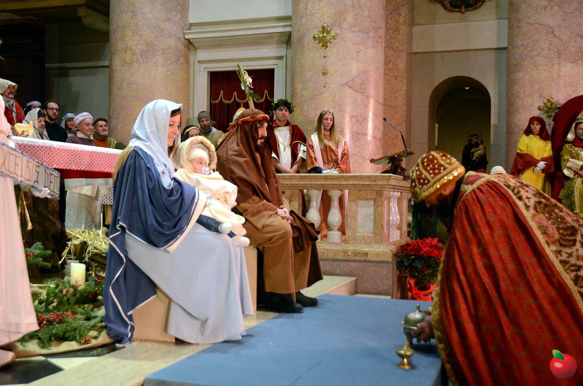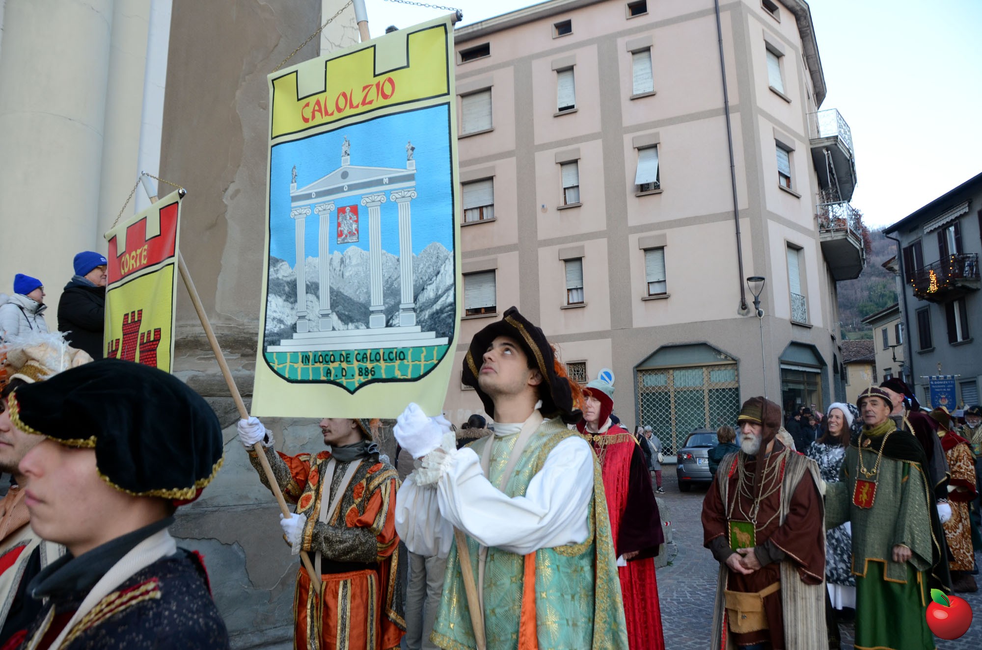 Presenti, in fascia tricolore, anche il sindaco di Calolzio Marco Ghezzi, quello di Carenno Luca Pigazzini e il vice di Vercurago Carlo Greppi, seduti poi in prima fila dinnanzi all'altare dell'Arcipresbiterale, per la riflessione finale, aperta dall'ingresso "trionfale" dei vari personaggi, anticipato dagli sbandieratori che, come i pastori, hanno così reso omaggio, ancor prima dei Re Magi, alla Sacra Famiglia, dopo la lettura dell'annuncio della nascita del Figlio di Dio che si è fatto uomo.
