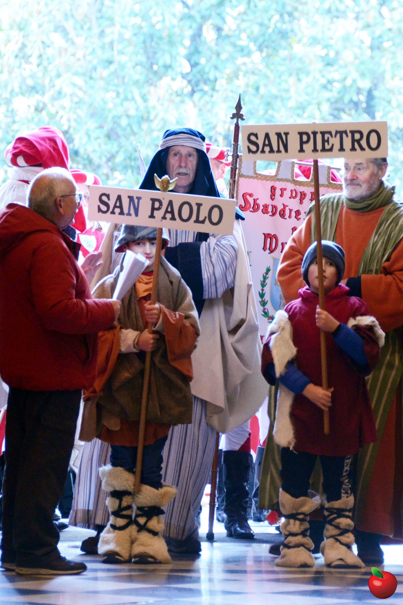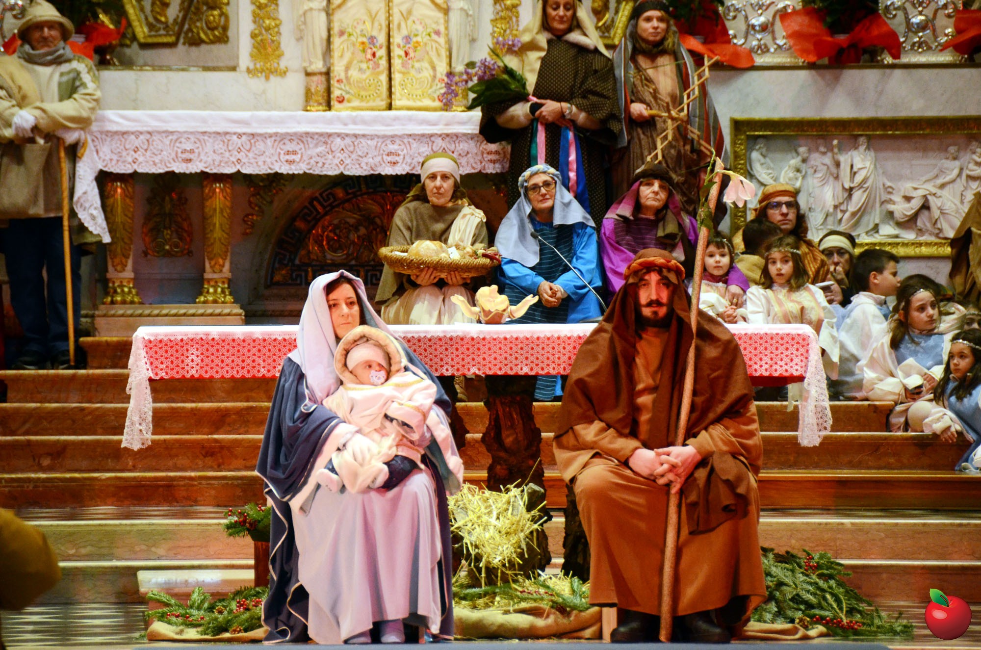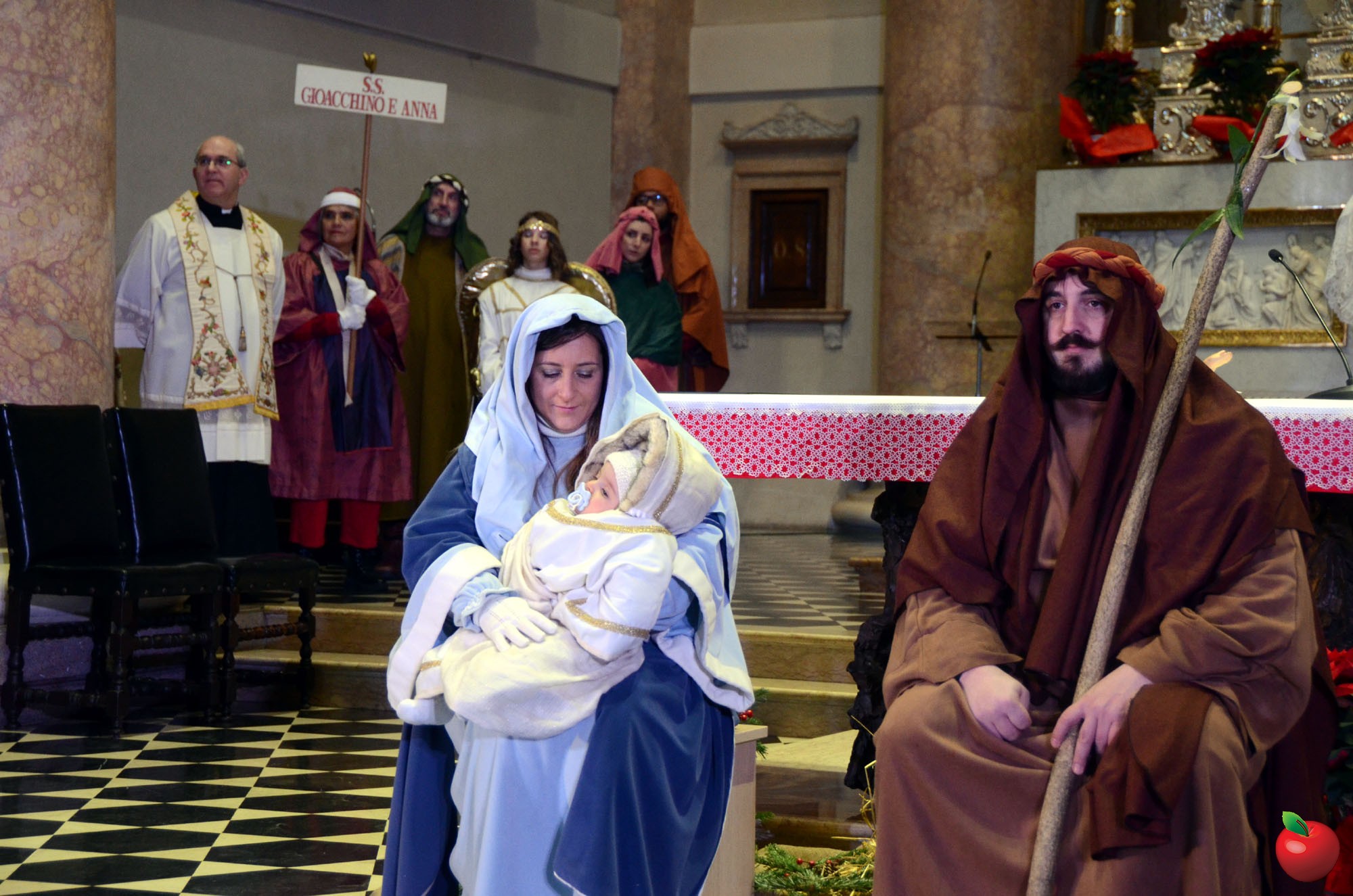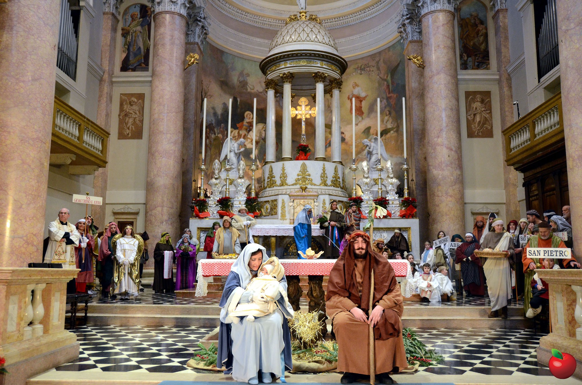 Presenti, in fascia tricolore, anche il sindaco di Calolzio Marco Ghezzi, quello di Carenno Luca Pigazzini e il vice di Vercurago Carlo Greppi, seduti poi in prima fila dinnanzi all'altare dell'Arcipresbiterale, per la riflessione finale, aperta dall'ingresso "trionfale" dei vari personaggi, anticipato dagli sbandieratori che, come i pastori, hanno così reso omaggio, ancor prima dei Re Magi, alla Sacra Famiglia, dopo la lettura dell'annuncio della nascita del Figlio di Dio che si è fatto uomo.
