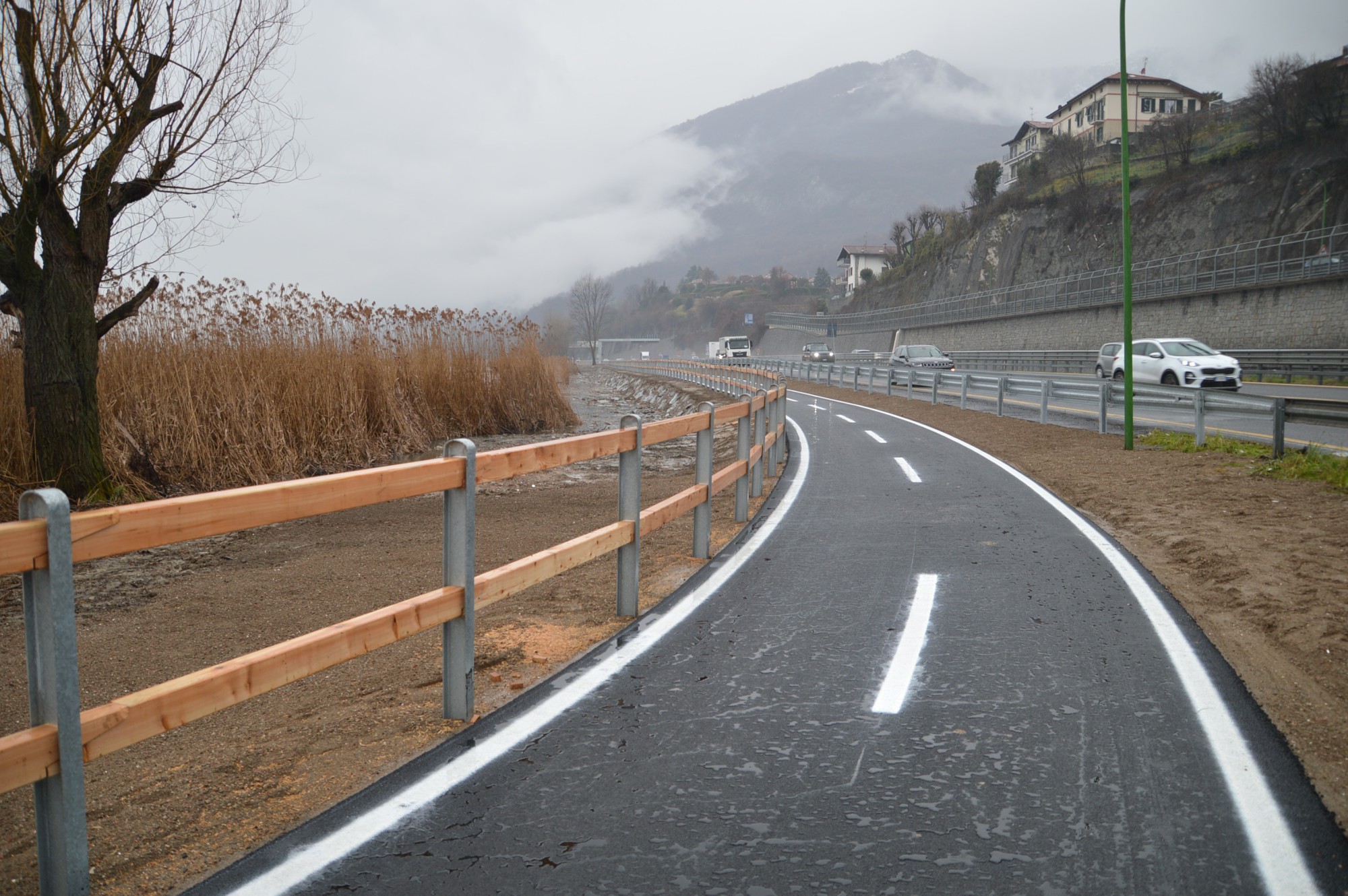 Castiglioni ha spiegato come solitamente l’Anas non realizzi opere di questo tipo, ma in questo caso è stato possibile grazie alla collaborazione con i Comuni. «Ed è stato un lavoro di non poco conto – ha aggiunto - La pista è lunga 2 chilometri e 400 metri ed è costata 4 milioni e mezzo di euro. I lavori sono stati anche complessi perché sotto la pista corre la dorsale della tubatura per la distribuzione del gas metano. Si tratta inoltre di un’opera che serve di protezione della Statale quando il livello del lago si innalza. La pista fa inoltre parte di un intervento più ampio di riqualificazione della Statale 36 tra Giussano e Civate che sarà completato entro la fine del 2026. I lavori ora proseguono spediti, dopo qualche problema iniziale».