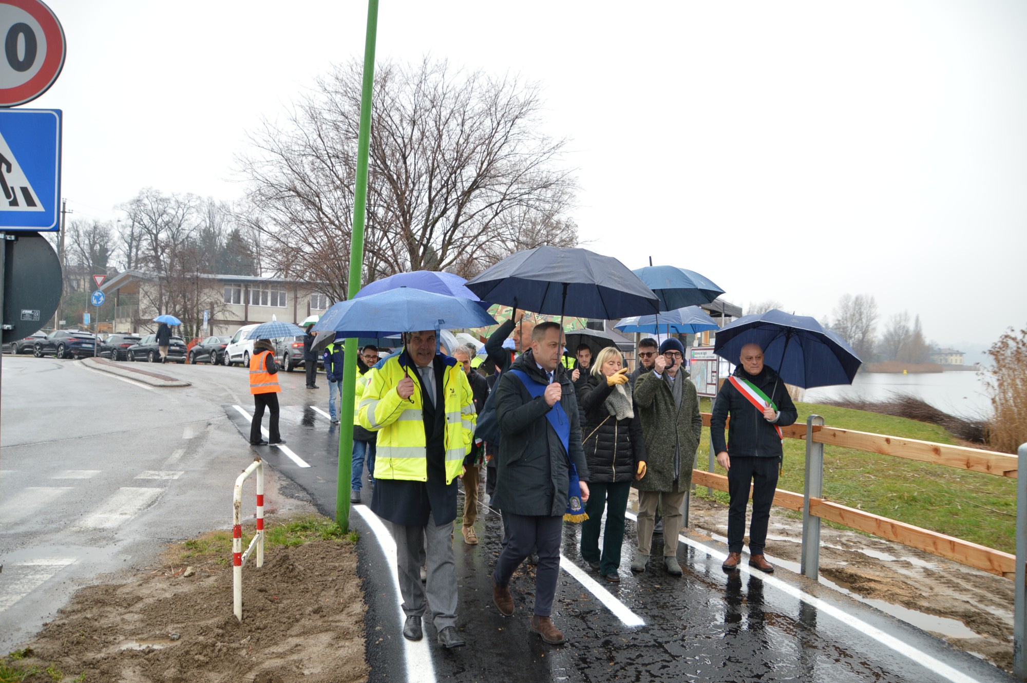 Inaugurato questa mattina il rinnovato tratto di pista ciclabile lungo la strada statale 36 tra il raccordo con la Provinciale per Como e la penisola di Isella, pista che in passato era soggetta a periodici allagamenti quando, in occasione di piogge abbondanti, in quel punto il lago di Annone esondava. Invadendo peraltro anche parte della carreggiata per le auto provenienti da Como.