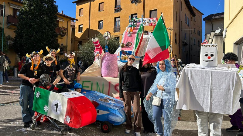 Questo pomeriggio Piazza Matteotti, dalle 14, ha iniziato a riempirsi di maschere pronte a sfilare dietro al carro a tema Giochi olimpici animato da bambini e adulti travestiti da sciatori, pattinatori e bobbisti ma anche da tedofori, “cinque cerchi”, vikinghi e pupazzi di neve.