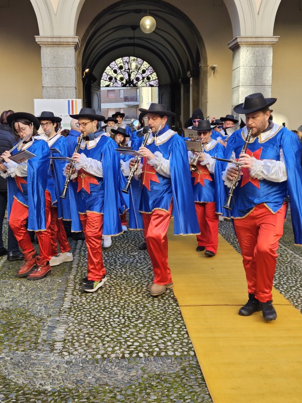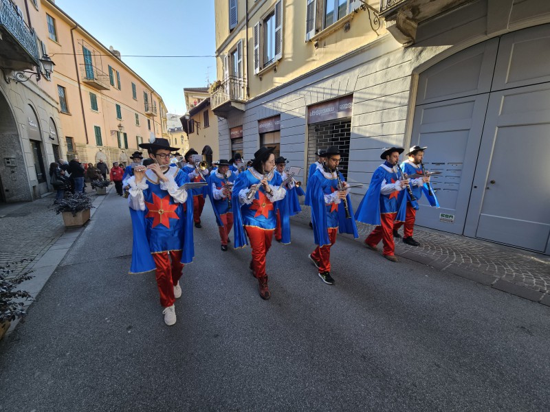 Il corteo è quindi partito da piazza XX Settembre, dove i regnanti e il Gran Ciambellano, accompagnati dalle note della Filarmonica Giuseppe Verdi di San Giovanni, hanno atteso la carrozza trainata dai cavalli. Da lì la sfilata ha attraversato via Roma, svoltato in via Carlo Cattaneo, percorso via Fratelli Cairoli per poi dirigersi verso il Municipio, tra applausi, musica e curiosi affacciati lungo le vie del centro.