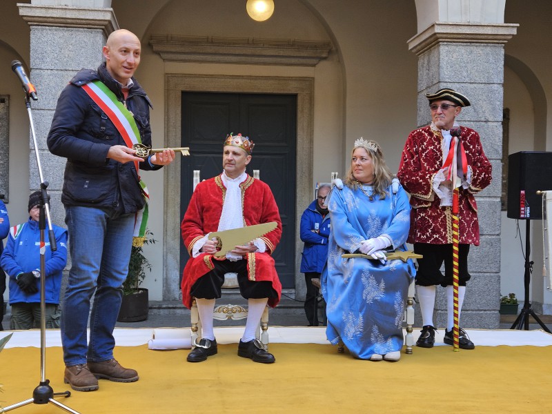 Lecco si è ufficialmente consegnata al Carnevale. Nel pomeriggio di oggi il sindaco Mauro Gattinoni ha affidato simbolicamente le chiavi della città a Re Resegone e Regina Grigna, impersonati da Andrea Vigevano e Giovanna Faccilongo con Rudi Engli quale Gran Ciambellano, dando così il via alla settimana più colorata e “matta” dell’anno.