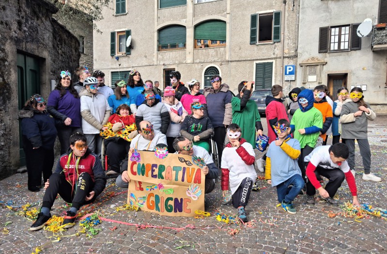 Il percorso è proseguito con entusiasmo e partecipazione da parte di tutti. Oggi, dunque, l'appuntamento tanto atteso, la sfilata in paese. Un bel gruppo si è incamminato verso la piazza della chiesa, dove ad attendere c’erano altri ospiti della cooperativa, in particolare quelli con disabilità più complesse che non consentono una deambulazione autonoma. Sul sagrato della chiesa, si è svolto un momento di festa condivisa: musica, balli e, infine, una merenda insieme.