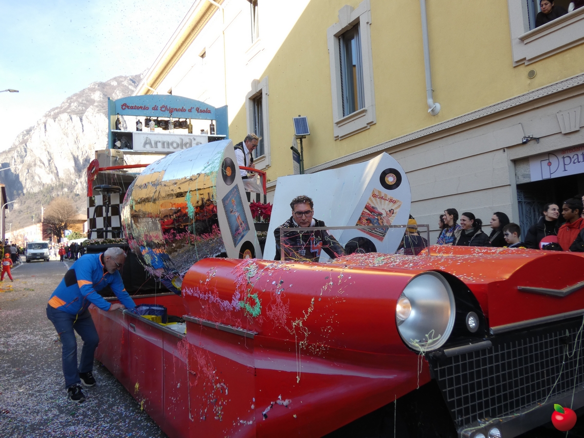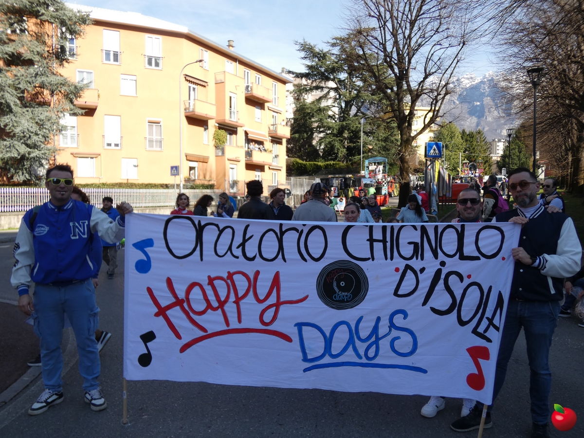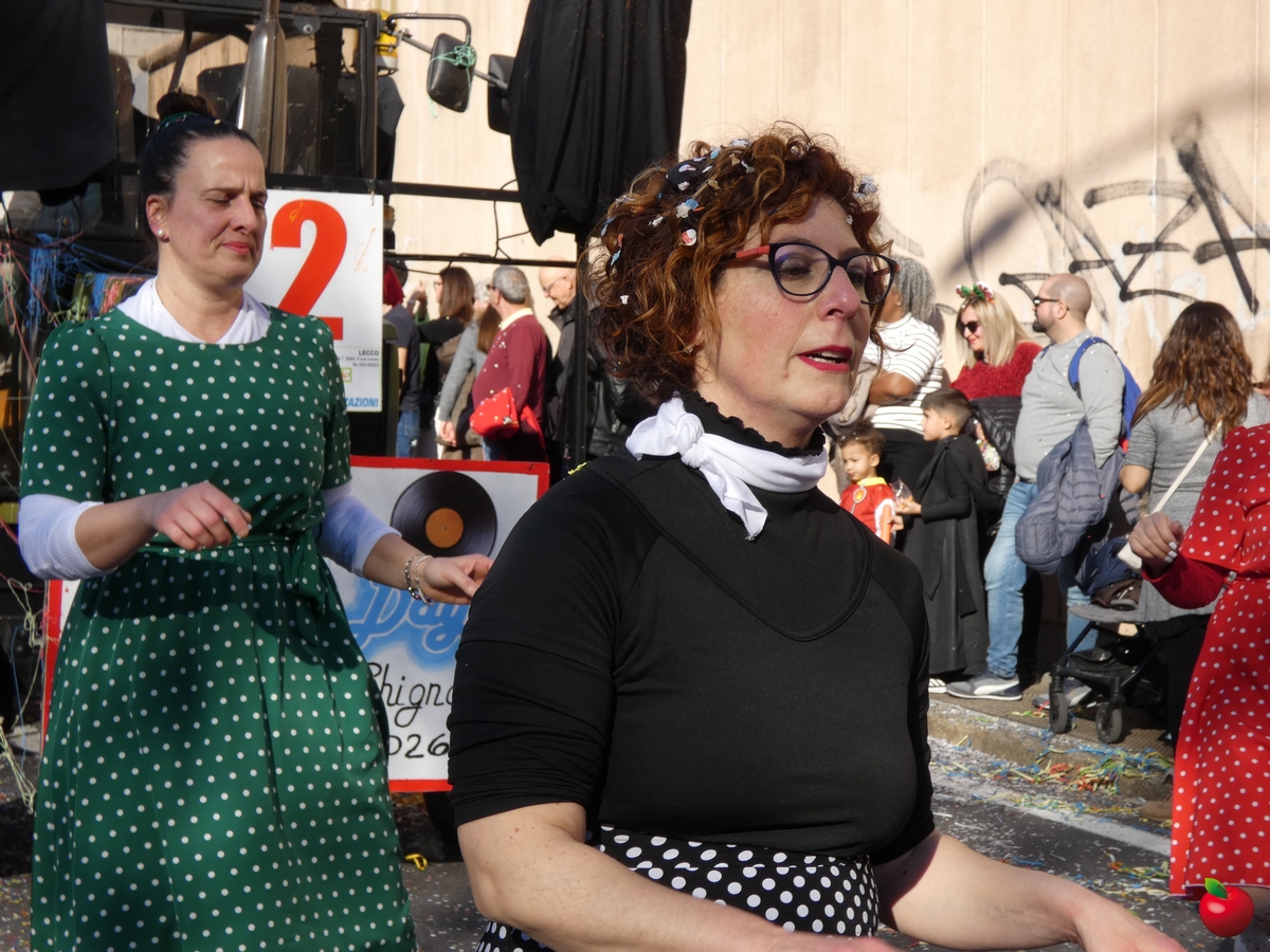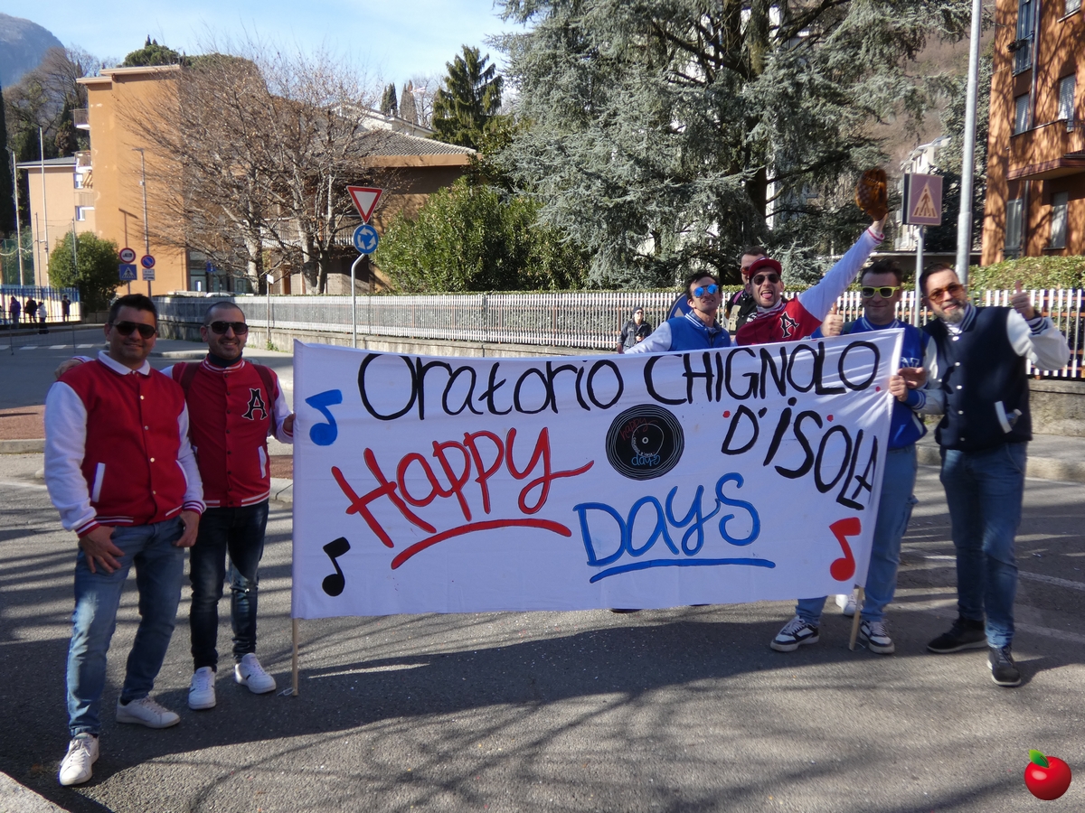 Ma anche la gioia, travolgente, delle formazioni che hanno animato la grande parata, partita dalla Chiesa dei Cappuccini in direzione del piazzale della Piccola, tra folklore locale e danze internazionali, tra majorettes e sbandieratori, con i sudamericani scatenati e carri allegorici effetto macchina del tempo: l'oratorio di Chignolo d'Isola ha evocato infatti i Mitici anni '60 con Happy days e Vivi Dolzago aps negli anni '90, con giubbe metallizzate e parrucche blu.