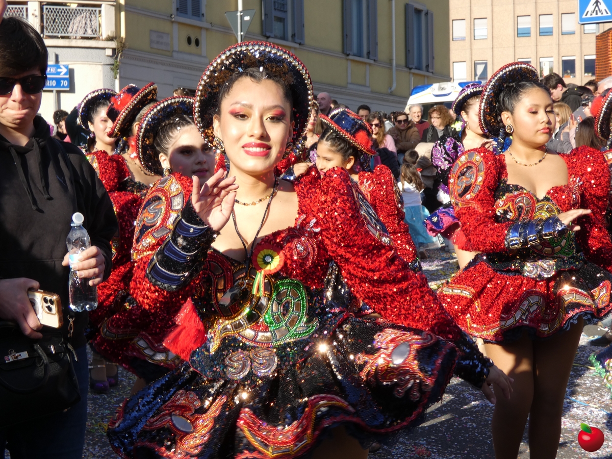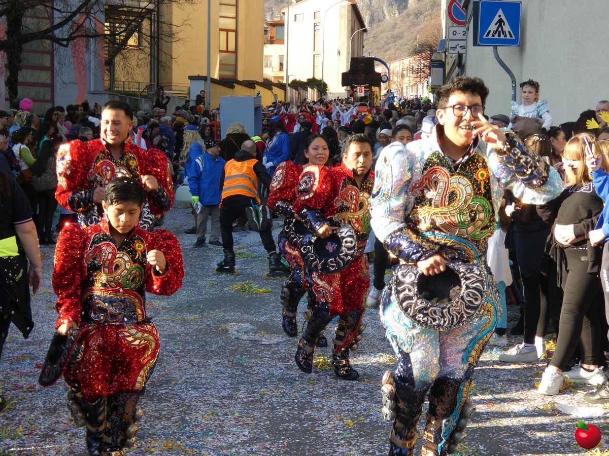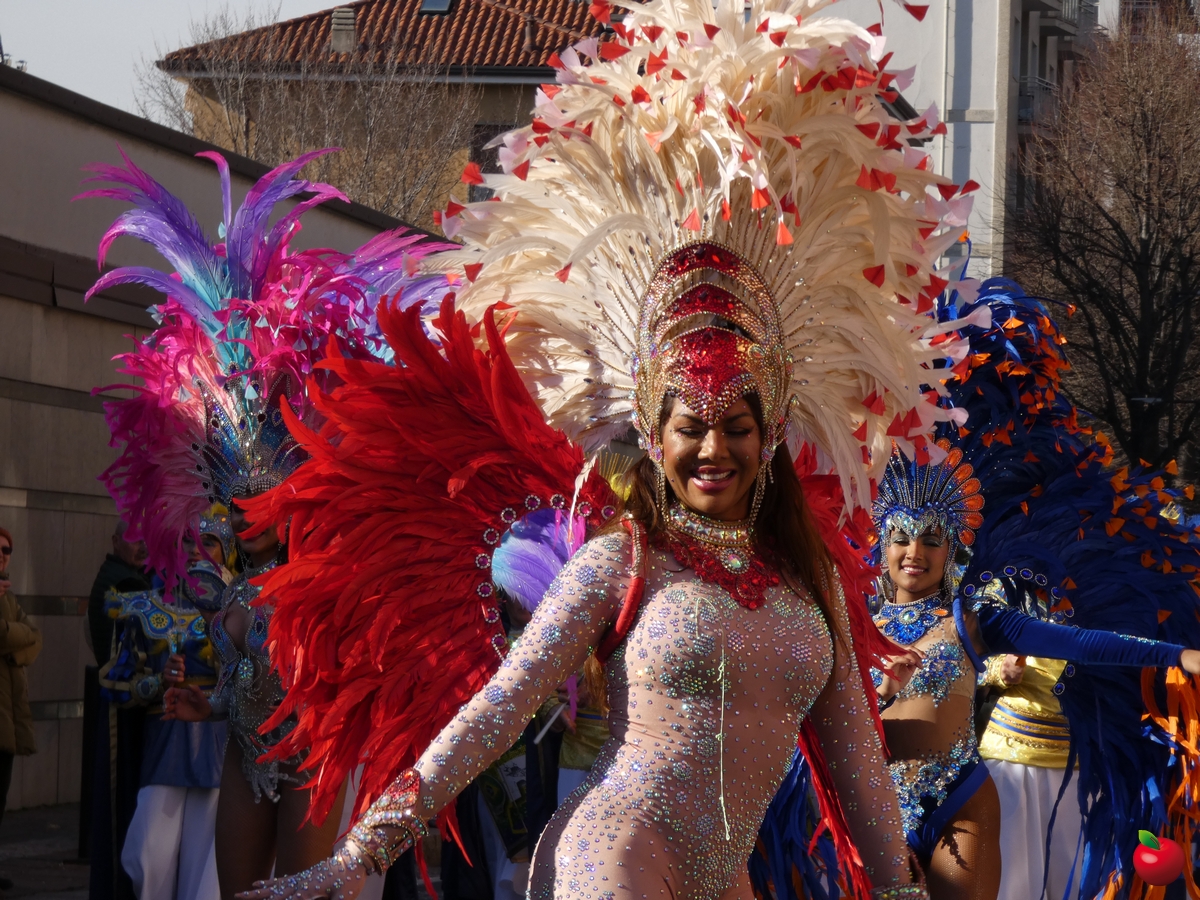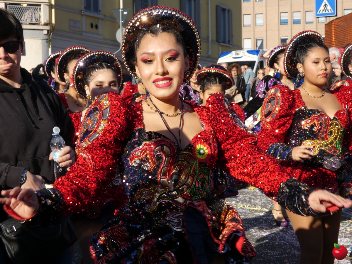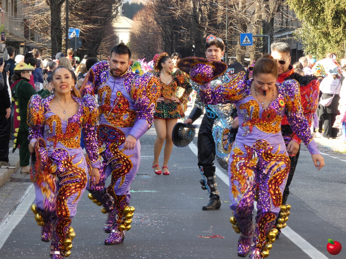 Ma anche la gioia, travolgente, delle formazioni che hanno animato la grande parata, partita dalla Chiesa dei Cappuccini in direzione del piazzale della Piccola, tra folklore locale e danze internazionali, tra majorettes e sbandieratori, con i sudamericani scatenati e carri allegorici effetto macchina del tempo: l'oratorio di Chignolo d'Isola ha evocato infatti i Mitici anni '60 con Happy days e Vivi Dolzago aps negli anni '90, con giubbe metallizzate e parrucche blu.