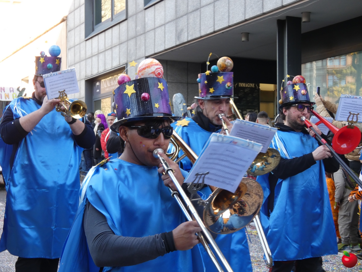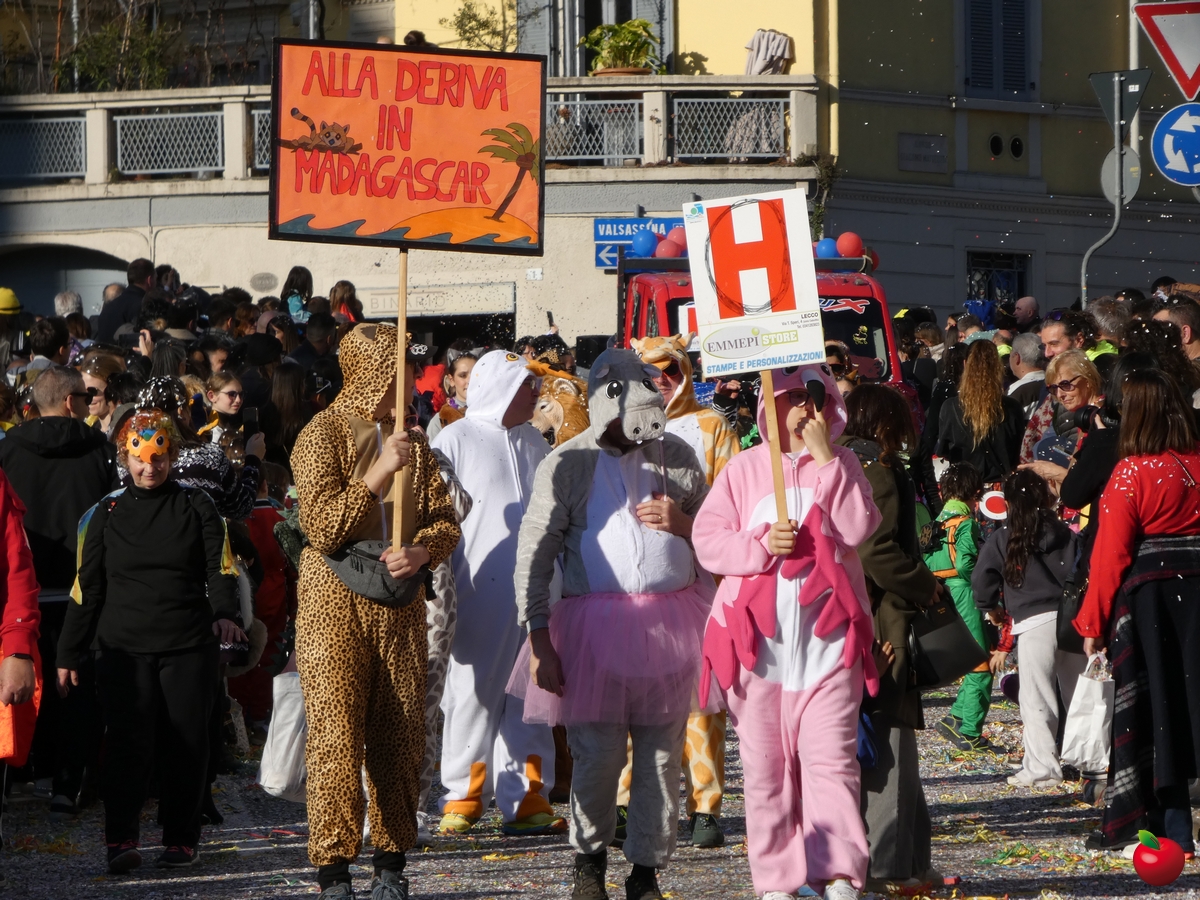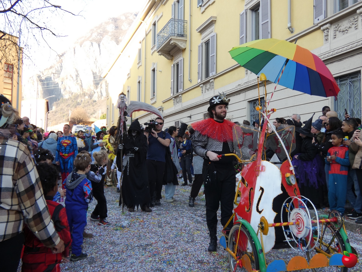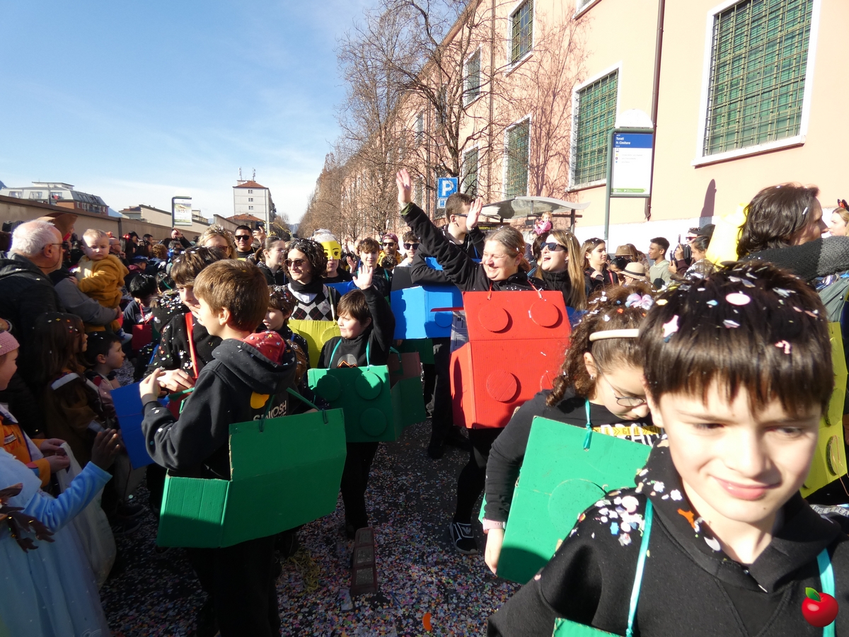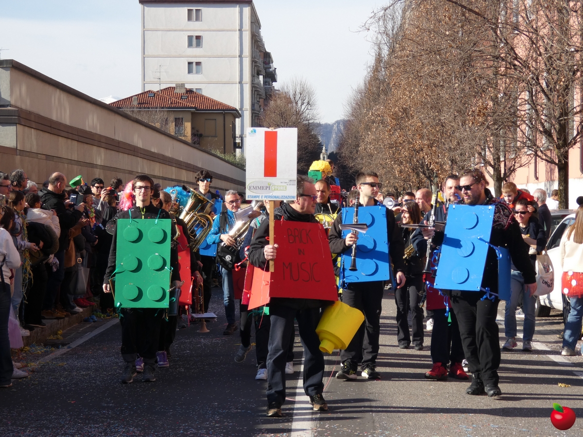 In corteo, giusto per citare i gruppi a chilometro zero, anche il San Luigi della parrocchia del centro cittadino, con travestimenti a tema “furto al Louvre” - tra quadri, ladri e l'iconica piramide simbolo del museo parigino - e la Filarmonica Giuseppe Verdi con i membri della Comunità Pastorale Lecco Alta in formato mattoncino.