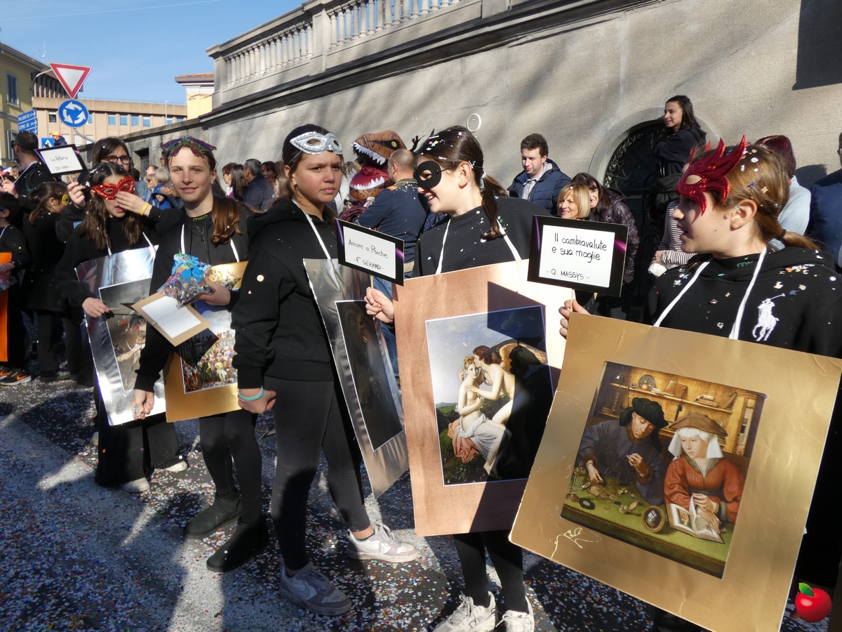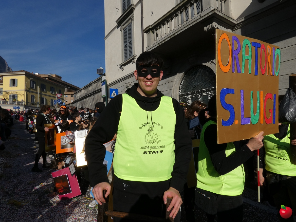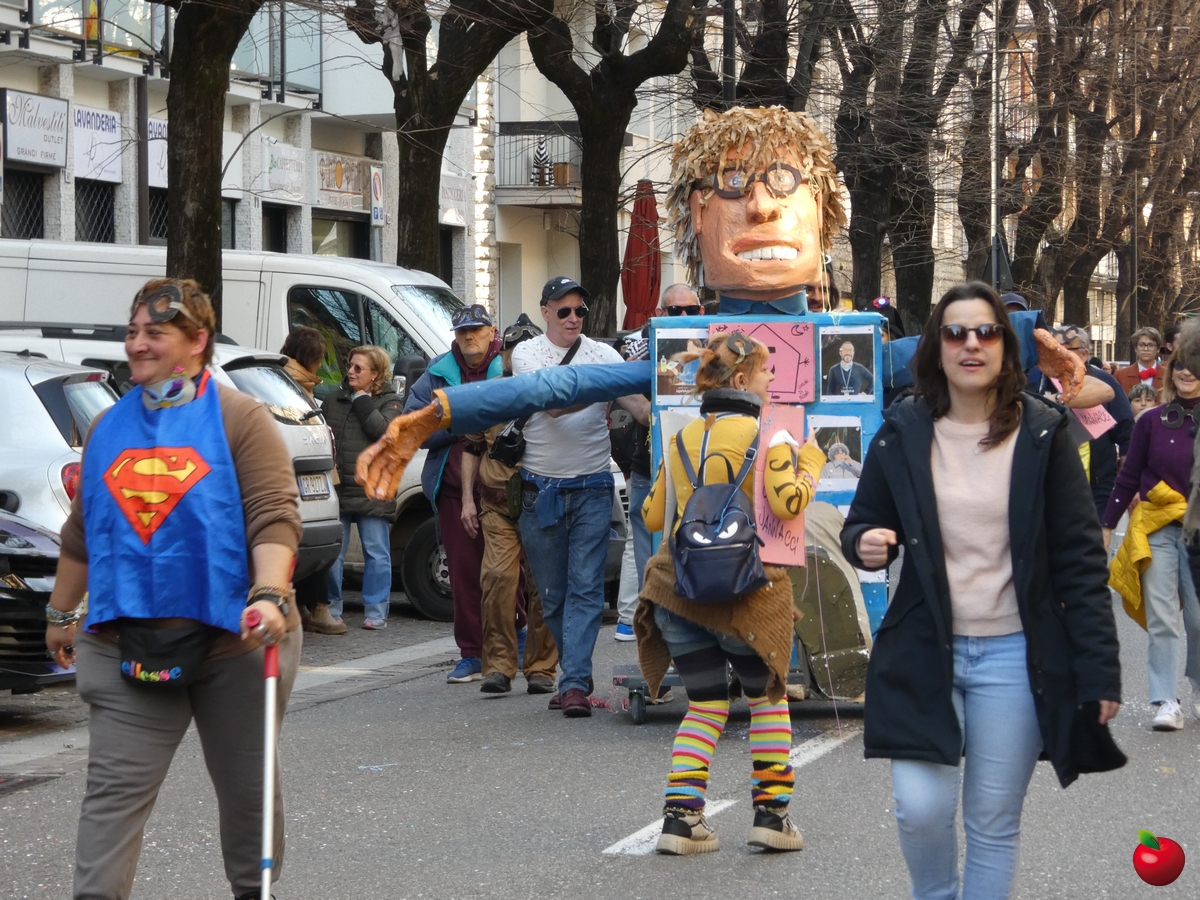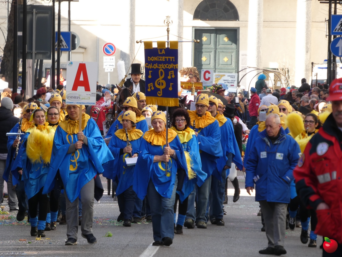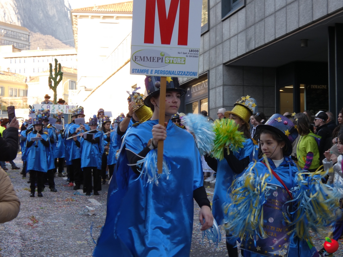 In corteo, giusto per citare i gruppi a chilometro zero, anche il San Luigi della parrocchia del centro cittadino, con travestimenti a tema “furto al Louvre” - tra quadri, ladri e l'iconica piramide simbolo del museo parigino - e la Filarmonica Giuseppe Verdi con i membri della Comunità Pastorale Lecco Alta in formato mattoncino.