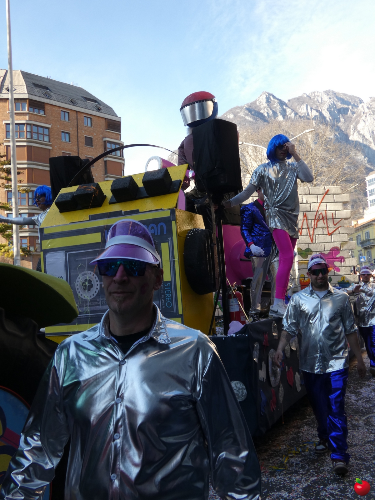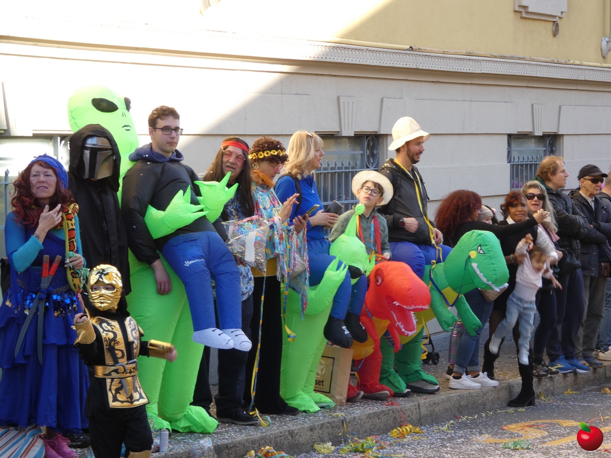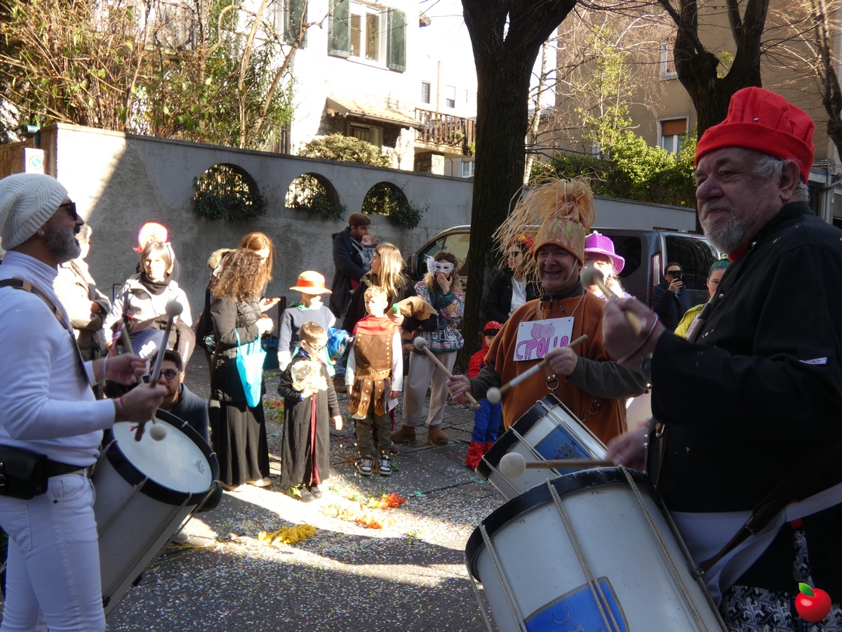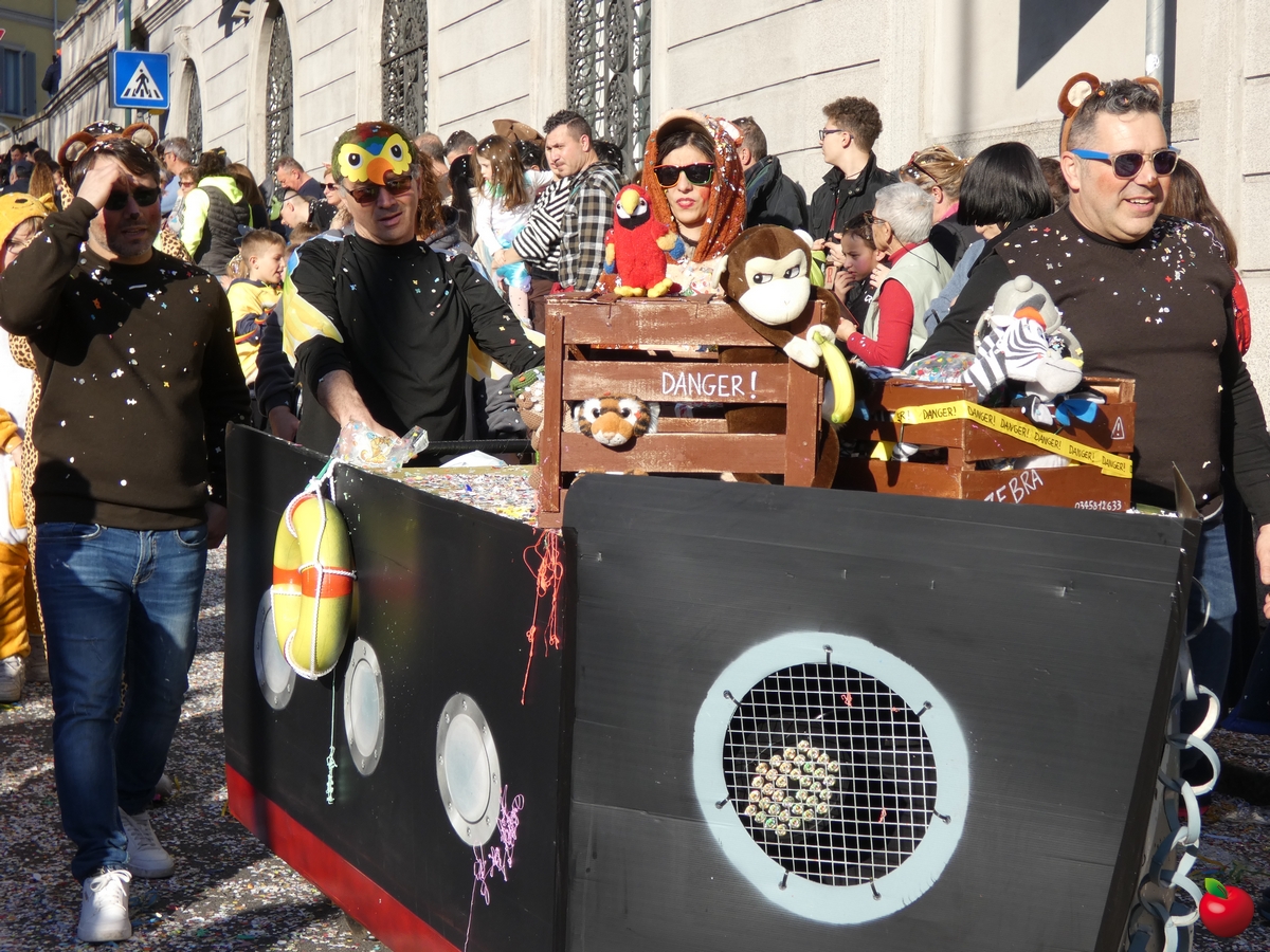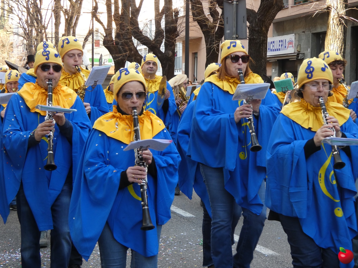 In corteo, giusto per citare i gruppi a chilometro zero, anche il San Luigi della parrocchia del centro cittadino, con travestimenti a tema “furto al Louvre” - tra quadri, ladri e l'iconica piramide simbolo del museo parigino - e la Filarmonica Giuseppe Verdi con i membri della Comunità Pastorale Lecco Alta in formato mattoncino.