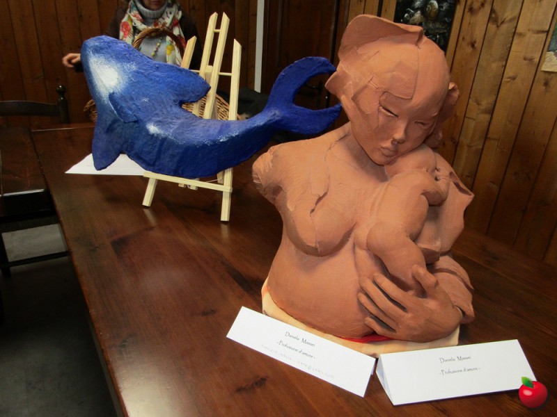 Oltre ai componimenti in versi, la mostra allestita in occasione dell’8 marzo comprende diverse opere pittoriche (dipinte su tela, su carta, in serigrafia e anche su un particolare tessuto proveniente dal Centro America, e in particolare dalla tribù Kuna di Panama) e due sculture (una delle quali è stata realizzata dalla giovanissima artista Angelina Calcagno), per un totale di oltre trenta creazioni.